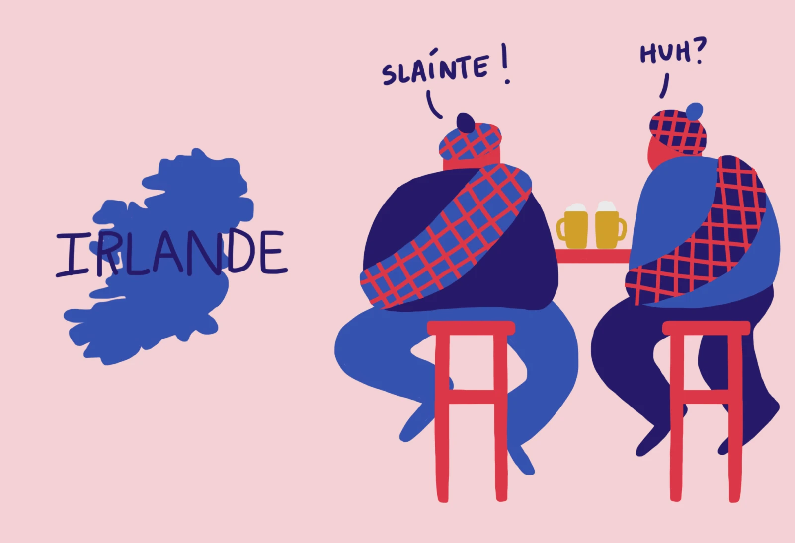 Eh oui! L’anglais n’est pas la langue d’origine de l’Irlande, seul État de l’Union européenne dont la première langue officielle, l’irlandais, est une langue minoritaire. Tellement minoritaire qu’elle est aujourd’hui parlée par à peine 2 % de la population, à la suite d’une longue assimilation des Anglais depuis le XIVe siècle.