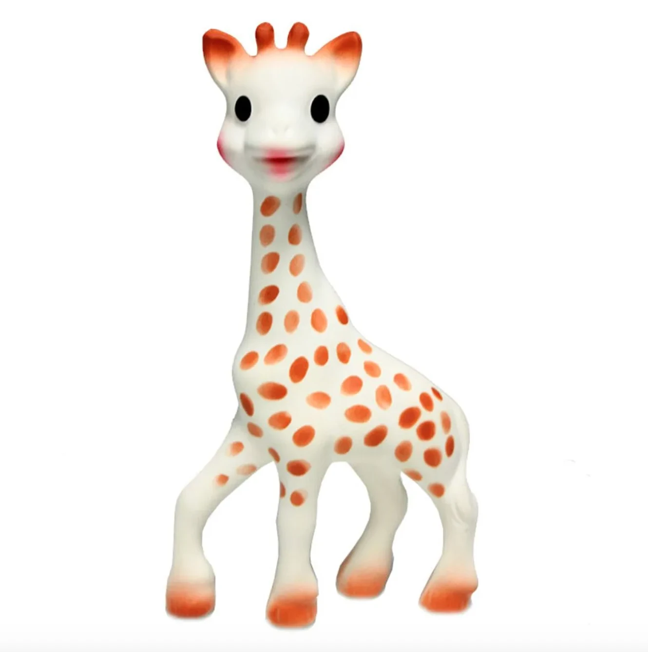 Ça fait 62 ans que Sophie la girafe se fait mâchouiller la face et les pattes par des bébés de partout dans le monde. Son squeak irrésistible décroche chaque fois un sourire aux enfants qui font leurs dents.