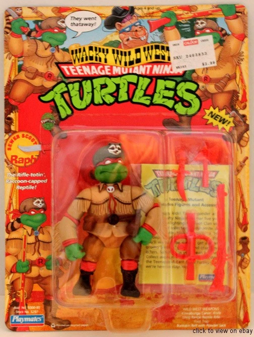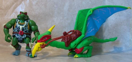 Je pense que Raphaël est inconsciemment devenu mon Ninja Turtle favori simplement parce que l’équipe marketing lui donnait les concepts les plus champ gauche. Voici donc Raphaël ninja de Néandertal chevauchant son… ninja dinosaure? Aucune idée pourquoi quelqu’un nécessiterait les services d’un ninja à une époque où un rhinocéros laineux va être la cause de la plupart des mortalités, mais… niiiiiice.