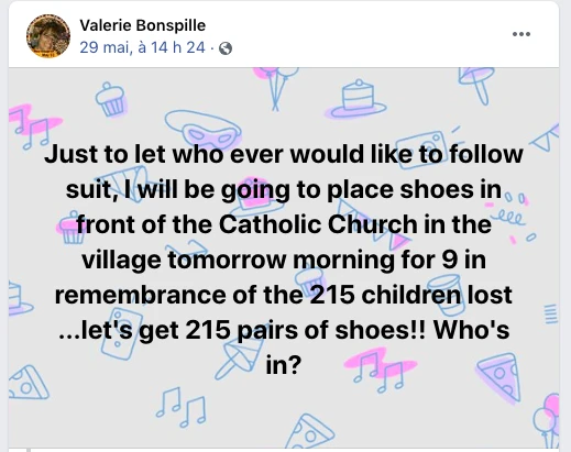 La publication a été partagée des dizaines de fois et une petite foule était au rendez-vous le lendemain matin. «J’ai vu ce geste posé dans notre communauté sœur (Kahnawake) et je me suis juste dit qu’on devrait faire la même chose ici, au nom de ces enfants qui n’ont pas pu rentrer chez eux , confie Valerie, surprise et touchée par l’engouement instantané envers son invitation. «Des femmes sont même venues avec leurs instruments interpréter des chansons d’honneur et des gens viennent encore porter des souliers deux jours plus tard , constate Valerie, qui a obtenu de l’église la permission de laisser les souliers là une dizaine de jours.