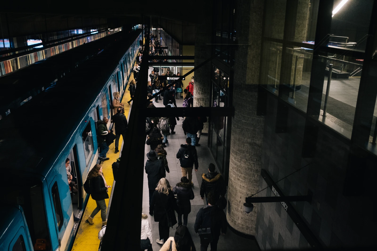 On se rend donc vers un ascenseur, Montmorency étant l’une des 11 stations accessibles aux personnes à mobilité réduite. Touristes un peu confus, on se trompe d’étage et on se retrouve plutôt au terminus Montmorency, qui connecte les usagers du métro aux autobus qui balaient la Rive-Nord.