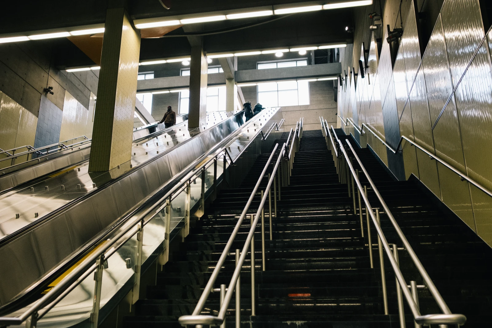 Des dizaines de gens sont assis, attendant leur correspondance. Difficile de savoir si on a affaire à du monde malheureux ou à des cas de resting bitch faces. Chose certaine, ici, l’attente n’est pas festive. Je me dirige vers le Café Dépôt pour en savoir plus sur les usagers.