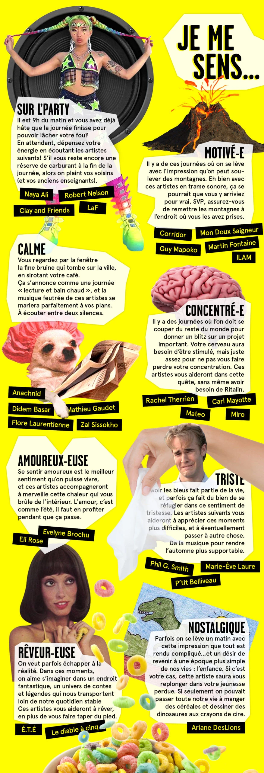 Et comme on sait que la musique, ça va vite, on vous offre aujourd’hui un outil pour vous aider à découvrir les artistes qui concordent avec votre humeur du moment.