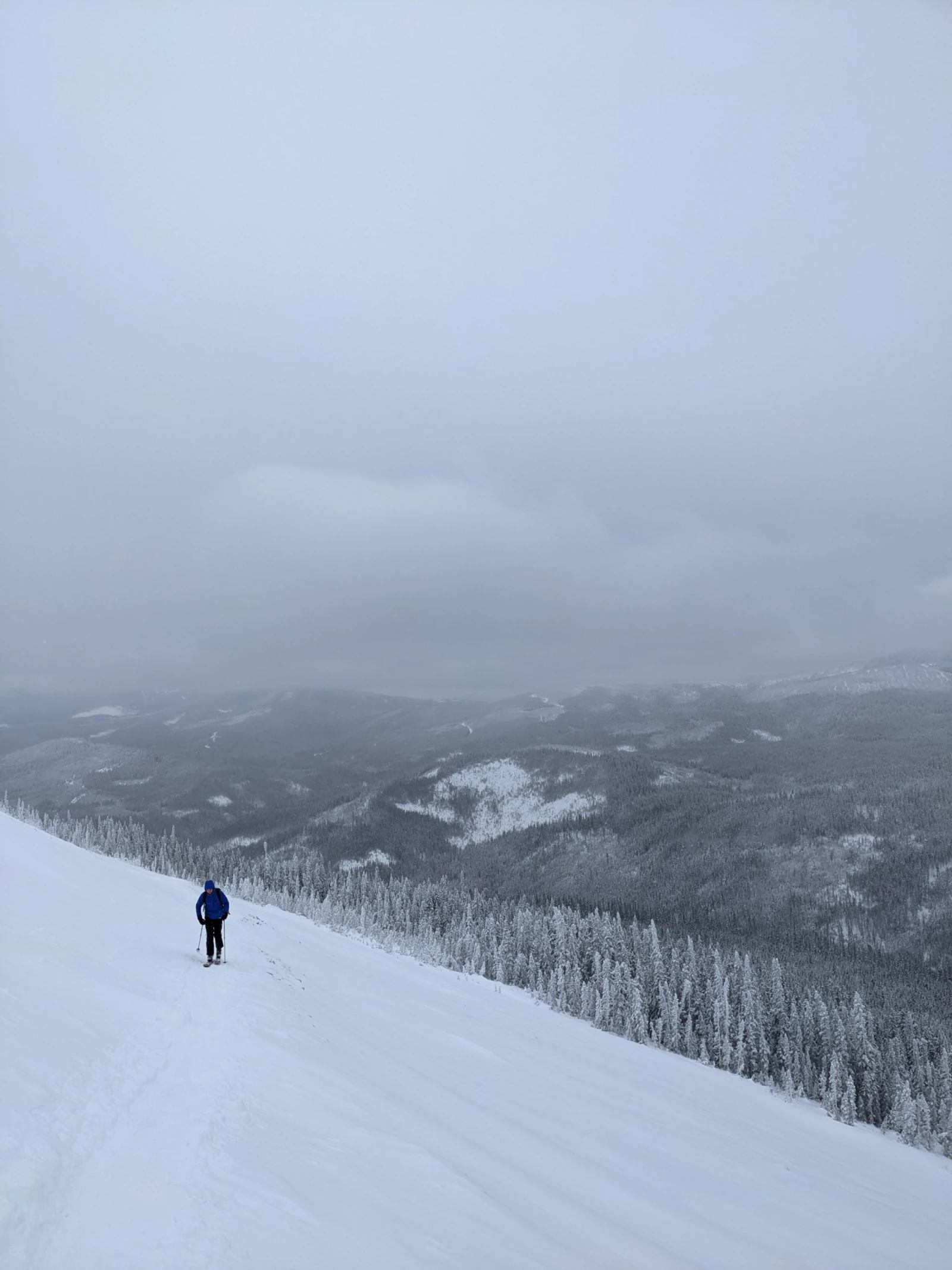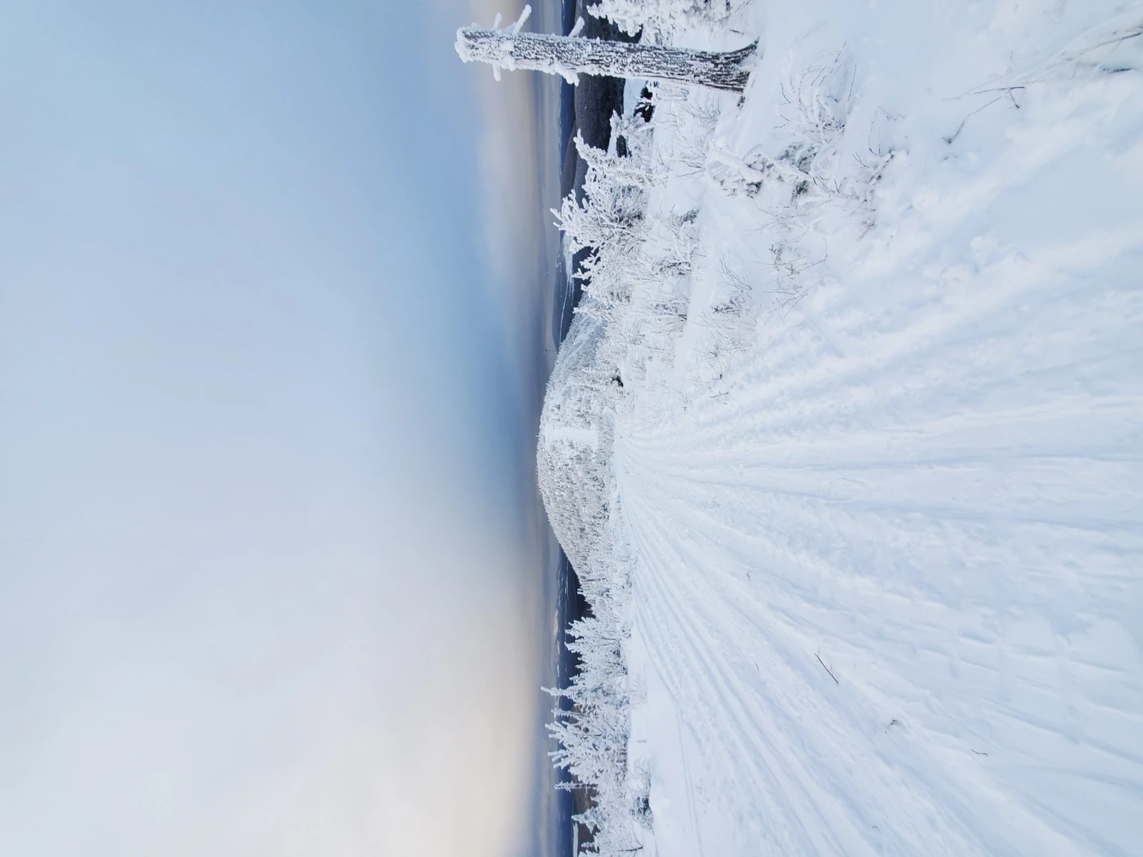 En fait, c’est un peu contre-intuitif au départ de se dire que nos skis ne glissent pas du tout par en arrière. Au début, je pensais que les peaux retenaient les skis sur une base avec un léger dénivelé, mais en montant, on réalise qu’elles adhèrent excessivement bien, et que même avec une pente très à pic, on ne glisse pas du tout.