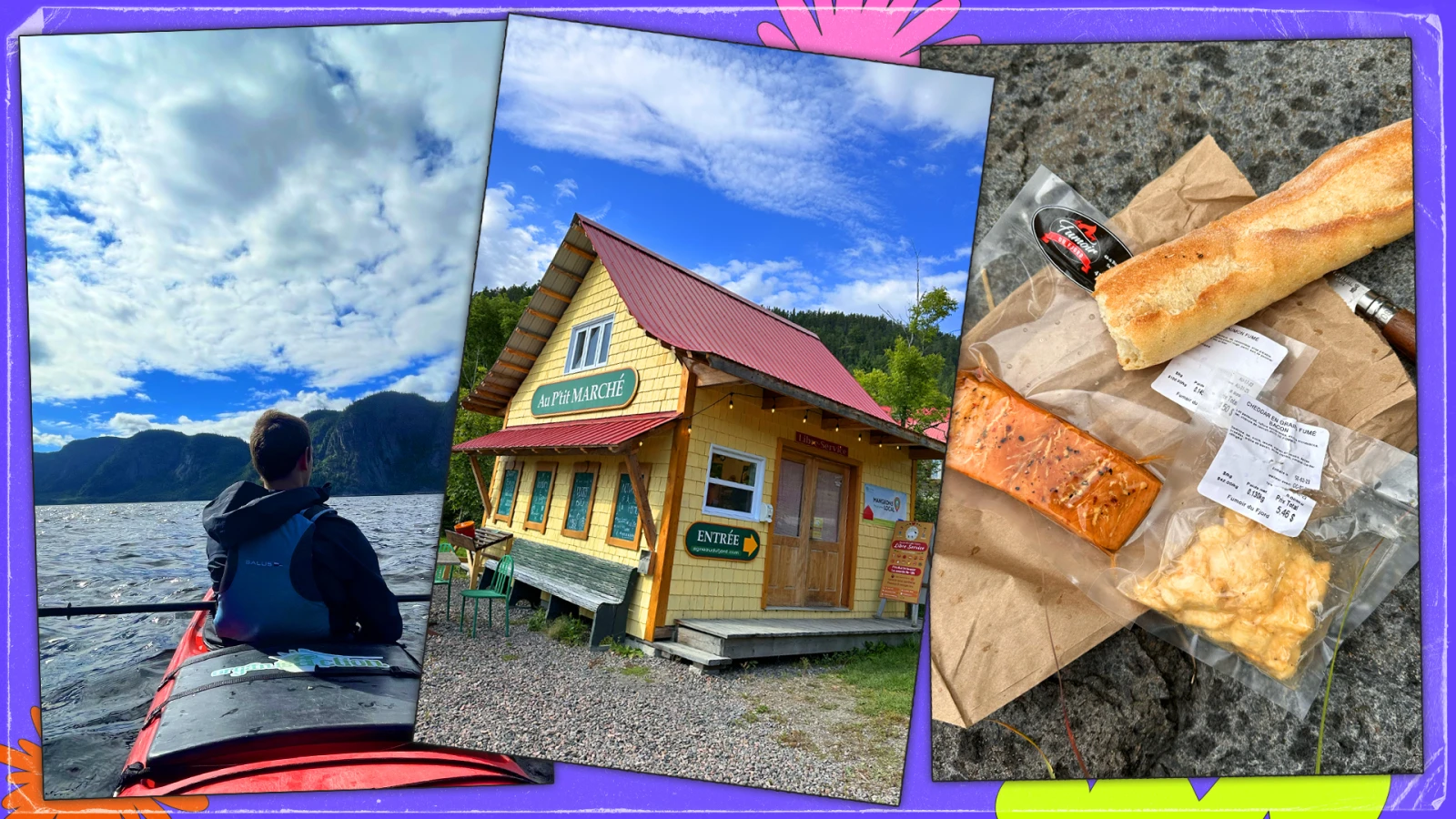 Ma deuxième recommandation est Au P’tit marché, en route vers le Cap Jaseux, parfait pour faire vos emplettes avant une escapade en forêt! Ils offrent des fruits et légumes directement venus de leur potager, du pain, des produits de viande prêts à cuire, des confitures, produits laitiers, jus frais et bien d’autres. Avec la vue directement sur le fjord, c’est aussi le parfait endroit pour vous arrêter, admirer la vue et déguster votre lunch.