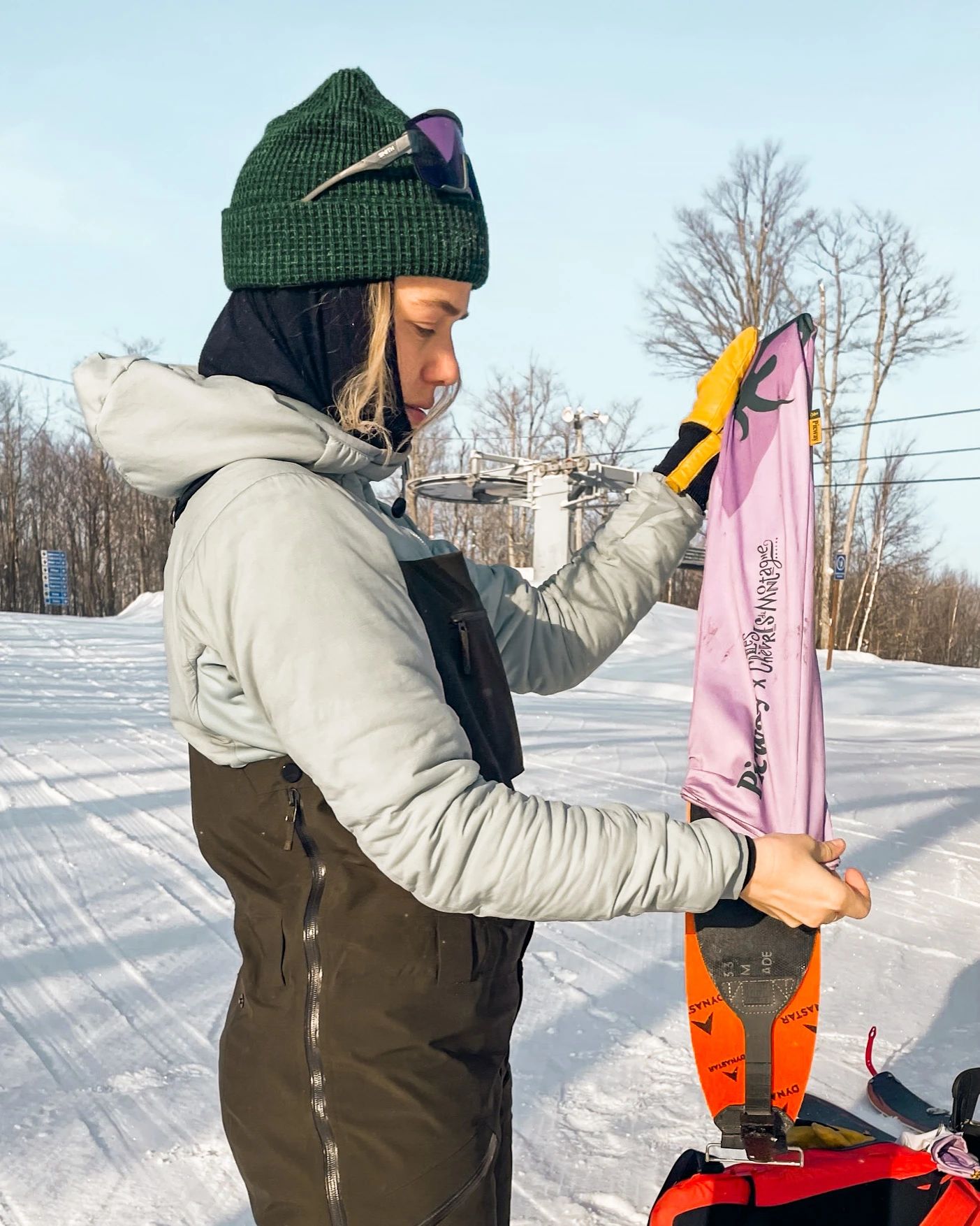 Assurément mon top 1. Elles me permettent d’éliminer le temps passé à me battre contre la colle de mes peaux. On n’a seulement qu’à les glisser à l’intérieur de ces « mitaines » et hop! Le tour est joué!