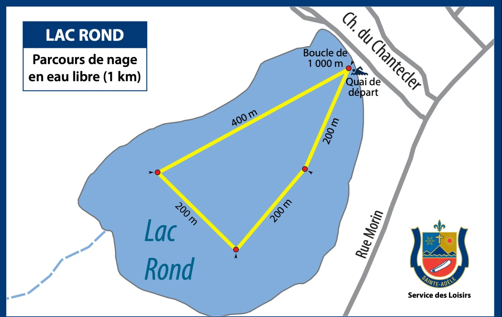 Ce lac est l’un des plus connus et appréciés par les nageurs dans les Laurentides. Sa petitesse est appréciée des nageurs novices. Un parcours de nage en eau libre d’un kilomètre est accessible aux nageurs âgés de 18 ans et plus à partir du quai du lac Rond (chemin du Chantecler).