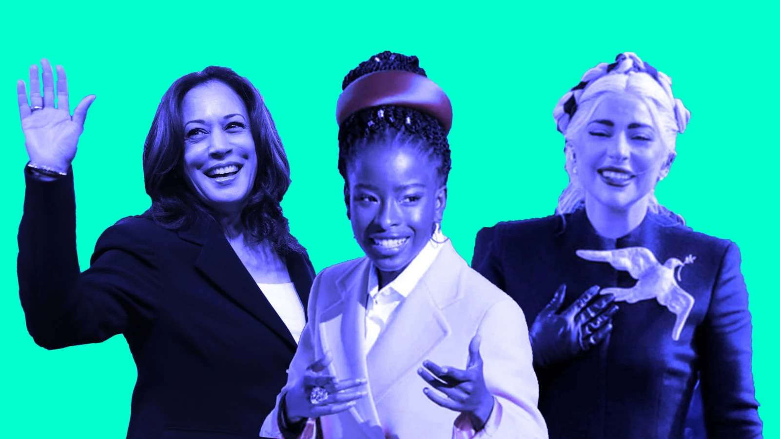 On note également que la chanteuse arborait une tenue qui n’est pas sans rappeler les power suit blancs régulièrement portés par les Kamala Harris, Hilary Clinton et Alexandria Ocasio-Cortez de ce monde. En effet, le blanc fait écho aux mouvements féministes et aux robes qu’arboraient les suffragettes manifestant pour le droit de vote des femmes au début du XXe siècle.