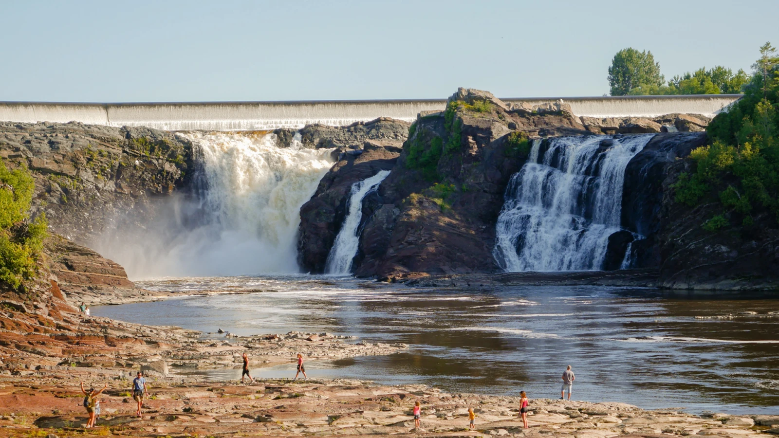 Impressionnante par sa hauteur de 72 mètres – 20 mètres de plus que celles du Niagara! – et riche en histoire, cette chute est illuminée le soir par des éclairages colorés qui donnent l’impression d’une danse dans le courant. Son bagage historique se mêle au décor avec l’usine de pâte à papier, qui était autrefois alimentée par la force de l’eau qui traversait le moulin servant à fabriquer la pulpe de bois.