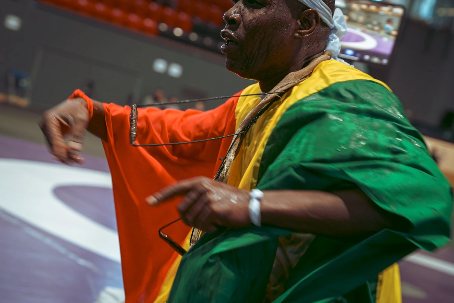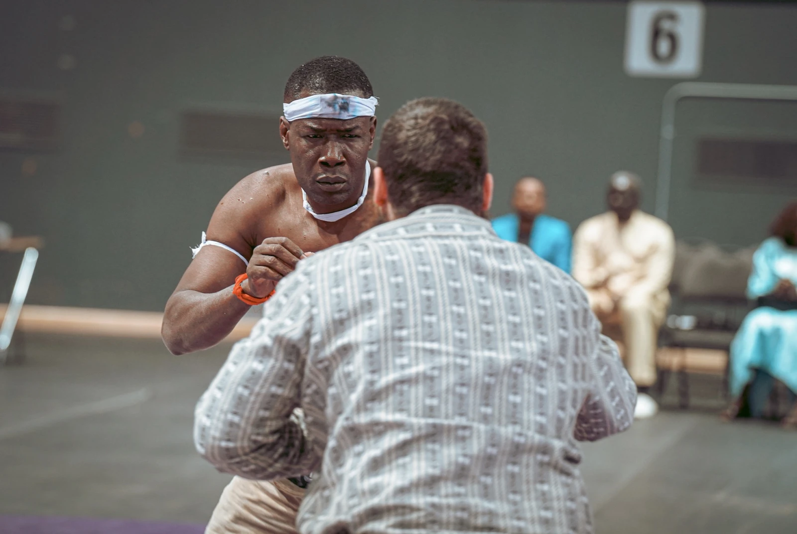Il y a un plaisir presque hypnotique à voir ces colosses esquisser leurs pas de danse, mêlant grâce et puissance avec une aisance déconcertante. Mention spéciale à coach Bakahry Sakho, armoire à glace version XXL, dont chaque mouvement déclenche une vague d’enthousiasme dans la foule de plus en plus bruyante. L’arène vibre, et ce n’est que le début.