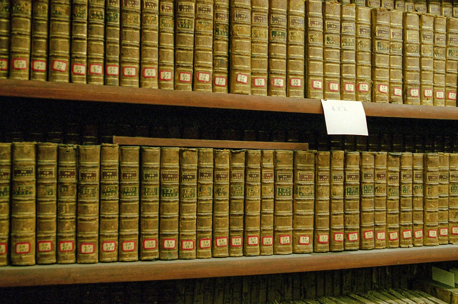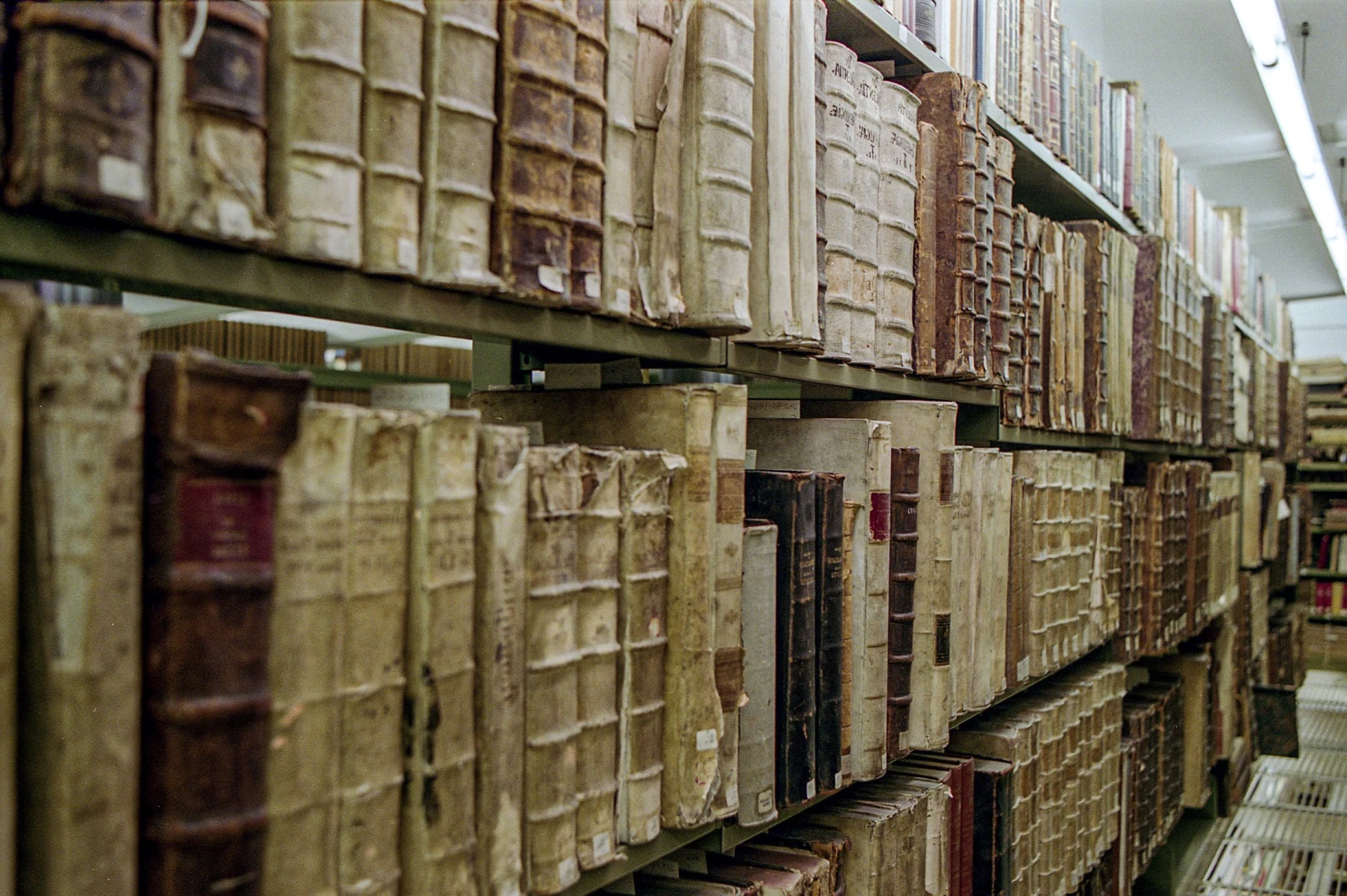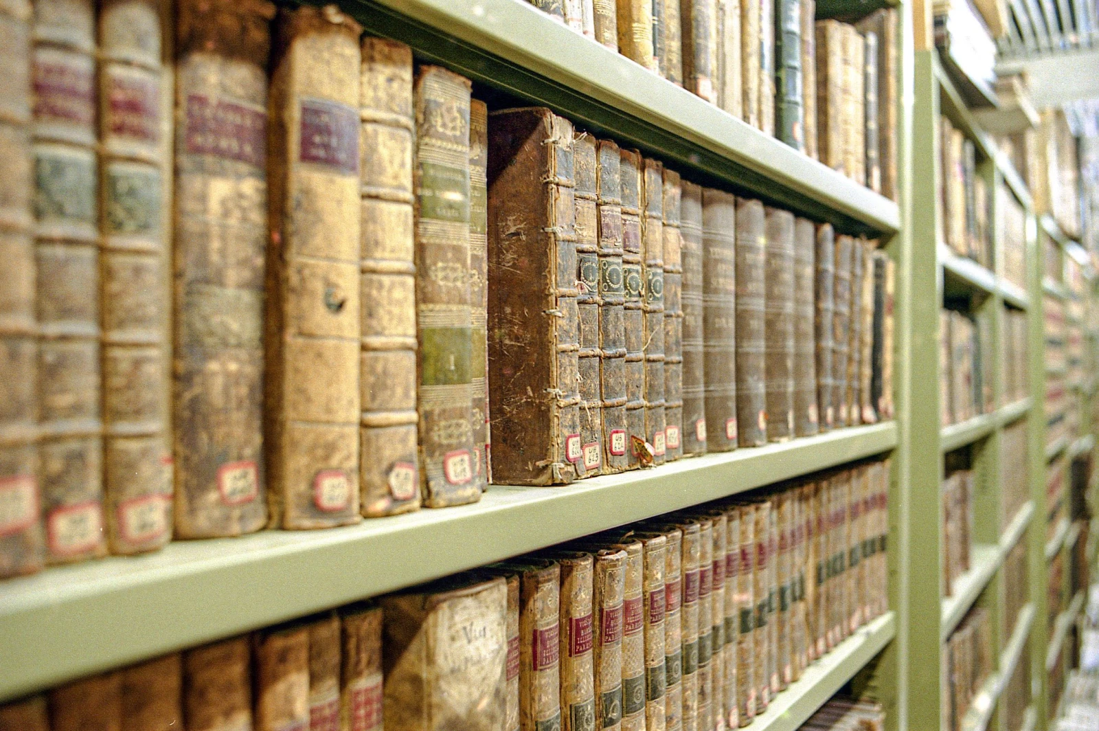 Les trois étages du haut s’ouvrent derrière une grille scellée à clé, où les photographies sont prohibées. Dans la voûte, l’odeur change, nos yeux s’écarquillent. Même s’il est permis de parler, contrairement à la règle d’or des bibliothèques habituelles, le silence est palpable. On se sent dans une nouvelle de Borges ou dans une scène de Richard au pays des livres magiques. Des milliers d’ouvrages anciens aux apparences de grimoire médiéval défilent sous nos regards béats.