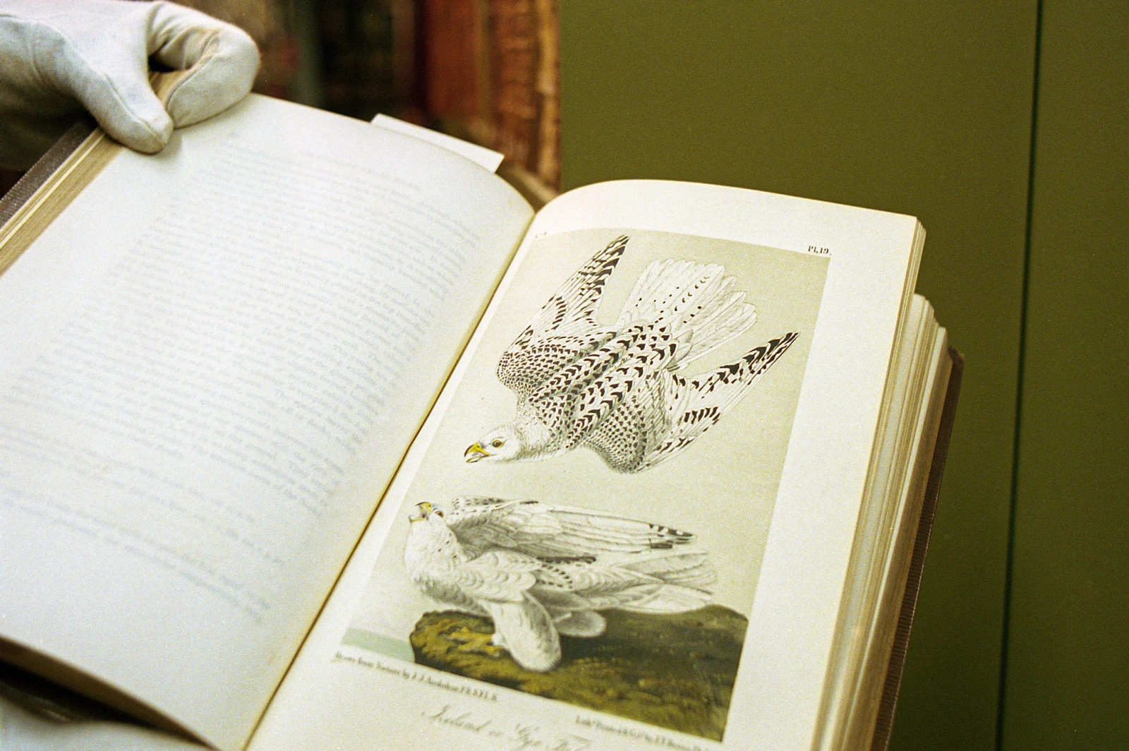 Alors que le groupe se dirige, comblé, vers la sortie, je reçois l’autorisation exceptionnelle de prendre quelques clichés à l’intérieur de la voûte. Je demande à tout hasard s’il y a une édition de Birds of America de Jean-Jacques Audubon, œuvre colossale considérée comme le Saint-Graal de l’ornithologie. Visiblement moins impressionné que moi, Patrick enfile ses gants blancs et déniche sans difficulté une incroyable copie du XIXe siècle révélant les plus fameuses illustrations ailées du continent nord-américain. Je m’efforce de ne pas sacrer par respect pour le décorum des lieux.