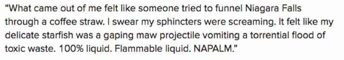 À ces trois éléments vitaux (incongruité, supériorité et surprise), se greffent parfois des éléments corollaires, des figures de style qui rehaussent l’effet comique de la blague scatologique. À cet égard, mon exemple favori est la section commentaires des bonbons Haribo sans sucre, sur Amazon, où les acheteurs se plaisent à décrire avec moult comparaisons, exagérations et métaphores les effets désastreux liés à l’ingestion de ces bonbons.