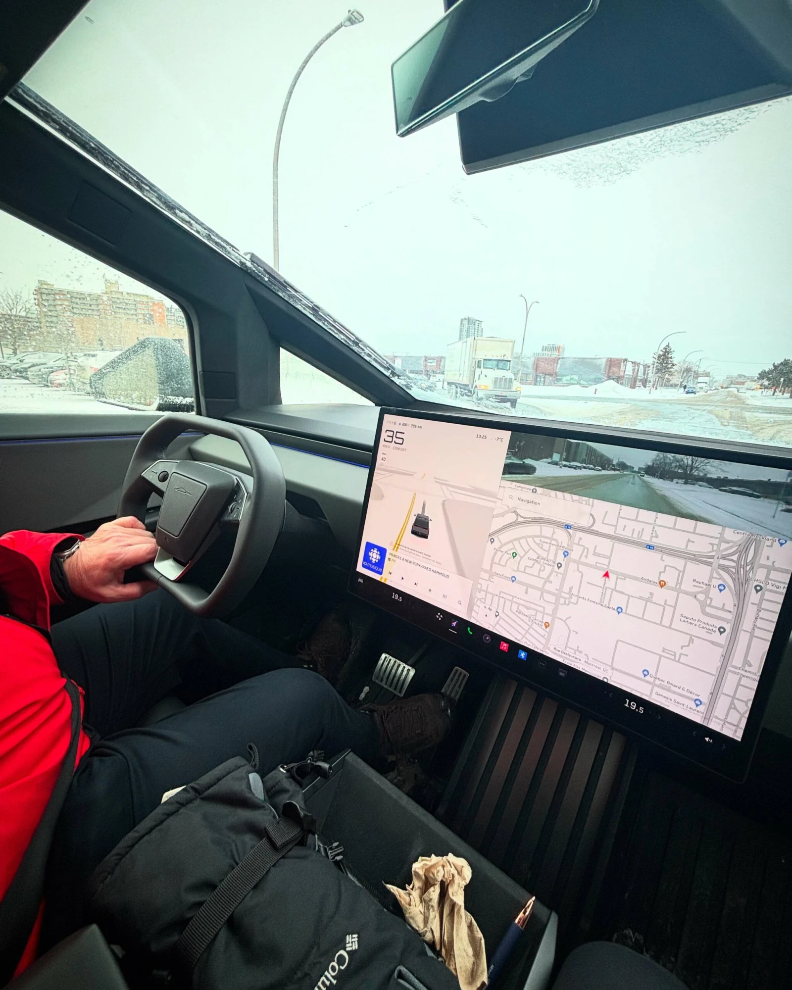 J’envoie parallèlement un message via Facebook au Club Tesla Québec, qui regroupe depuis 2012 des propriétaires enthousiastes de bagnoles du constructeur texan. Le VP du groupe, Gad Elmoznino, accepte gentiment de sonder le seul de ses membres (ils sont environ 2000) qui possède un Cybertruck. Je croise les doigts pour qu’il accepte de me donner un lift.