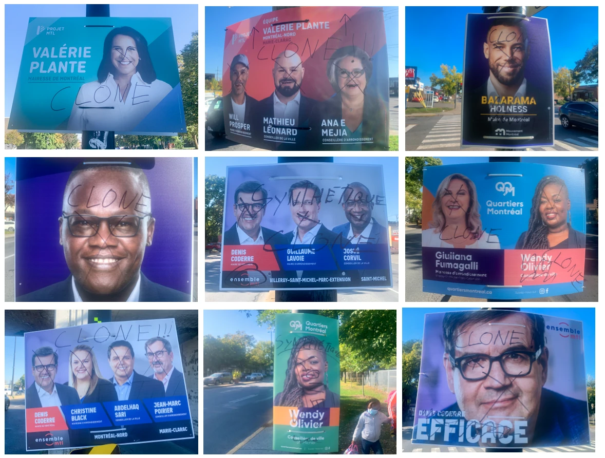 L’offensive s’étale autant sur les deux trottoirs que sur le terre-plein, de la rue Jarry au boulevard Industriel. Quartier Montréal, Mouvement Montréal, Ensemble Montréal ou Projet Montréal, nul parti n’est à l’abri. La mairesse, Balarama et même les candidats et candidates de Montréal-Nord ont tous été ciblés. Très peu ont été épargn é.e.s.