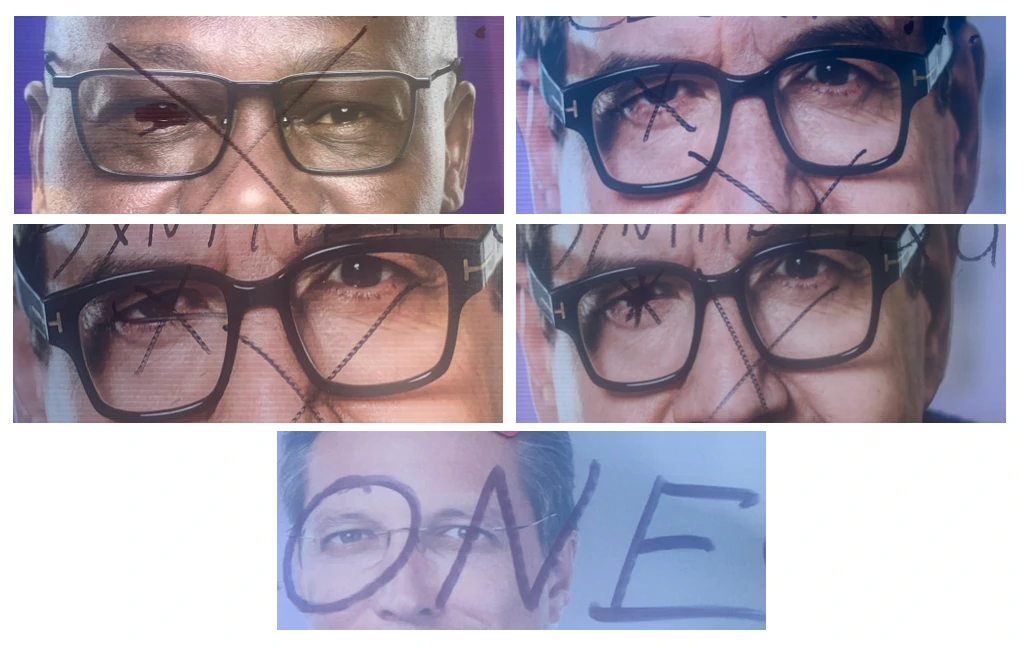 Le modus operandi est presque toujours identique : raturer les noms, biffer d’un X les visages et inscrire « CLONE » ou « CLONE SYNTHÉTIQUE » sur la largeur de l’enseigne.