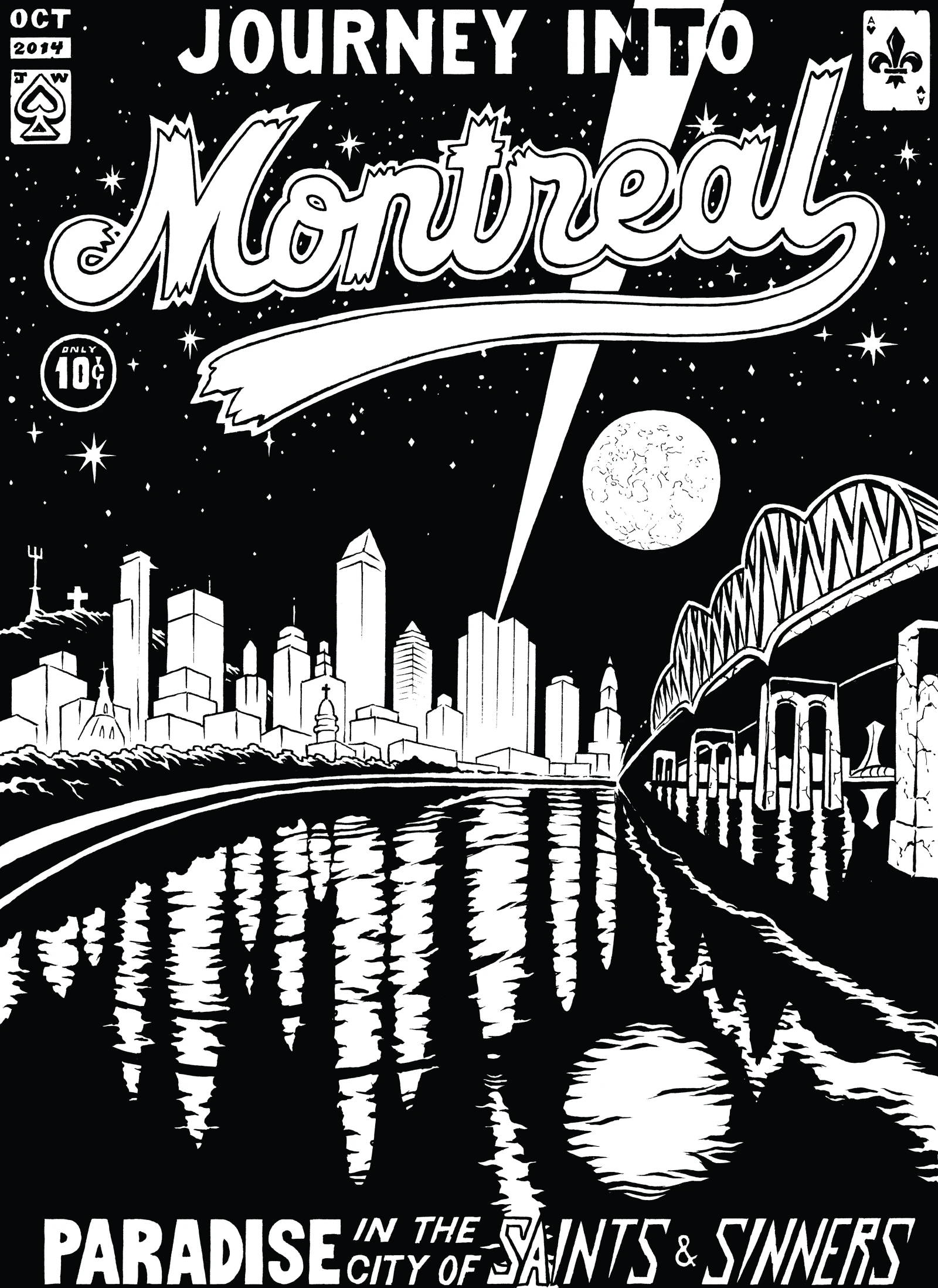 “Je travaille beaucoup sur le thème de Montréal. J’aime l’architecture, les édifices un peu croulants, les graffitis, tout ça m’inspire. L’idée de faire une série de posters qui étaient comme des couvertures de BD, c’était pour donner une histoire derrière l’image. Je pense que ça donne un peu plus de profondeur. Depuis, j’ai développé cette même idée, mais en sortant du cadre de Montréal, avec des thèmes plus typiquement associés à la bande dessinée, comme la romance, le fantastique et l’horreur.”