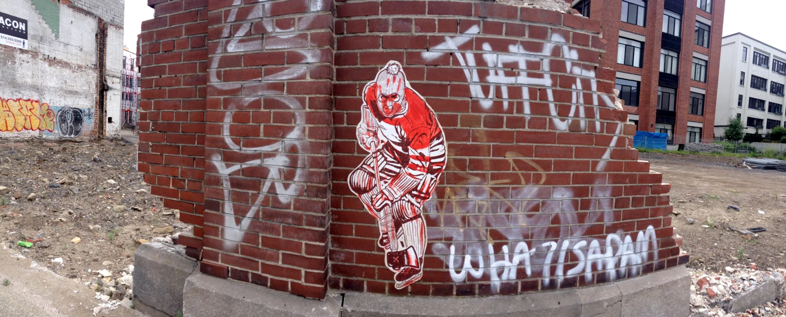“C’est un joueur de hockey rustique, masqué et portant une hache. Il peut être considéré comme un justicier ou un criminel. Je l’ai créé pendant la saison du lock-out des Canadiens de Montréal il y a plusieurs années. J’avais le sentiment qu’on était en train de voler les fans. Il est depuis devenu un symbole de rébellion et d’excitation lorsque la saison de hockey arrive.”