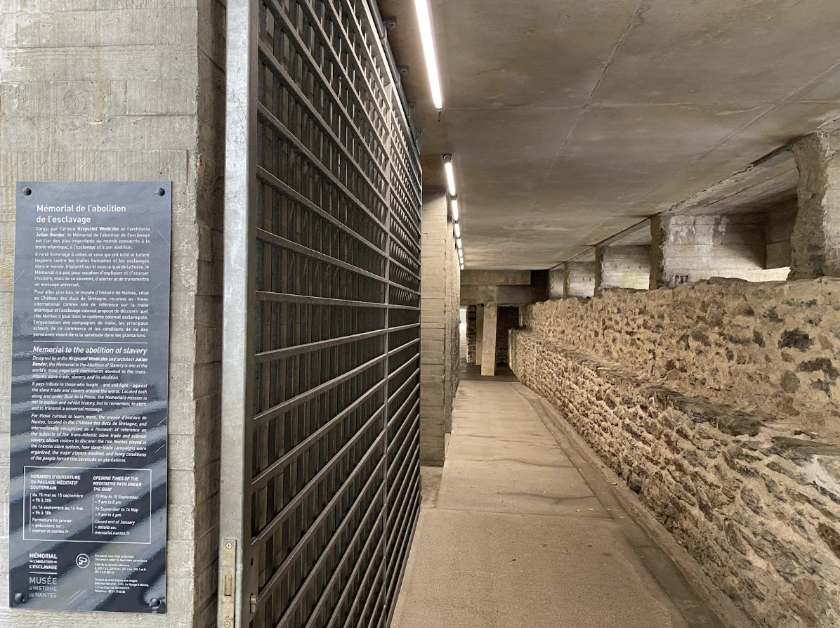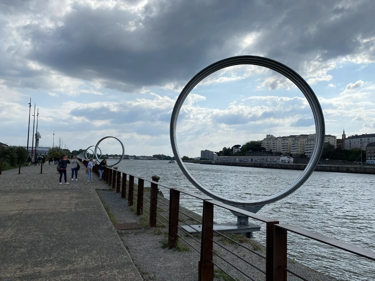 Installées en 2007 lors de la biennale d’art contemporain Estuaire, les 18 anneaux incarnent ceux qui emprisonnaient es esclaves, rappelant le passé de Nantes comme port stratégique enrichi par la traite d’esclaves.Un passé peu glorieux mais assumé par la métropole qui a décidé d’inaugurer non loin de là, en 2012, le Mémorial de l’abolition de l’esclavage imaginé par les artistes Julian Bonder et Krzysztof Wodiczko sur le quai de la Fosset.