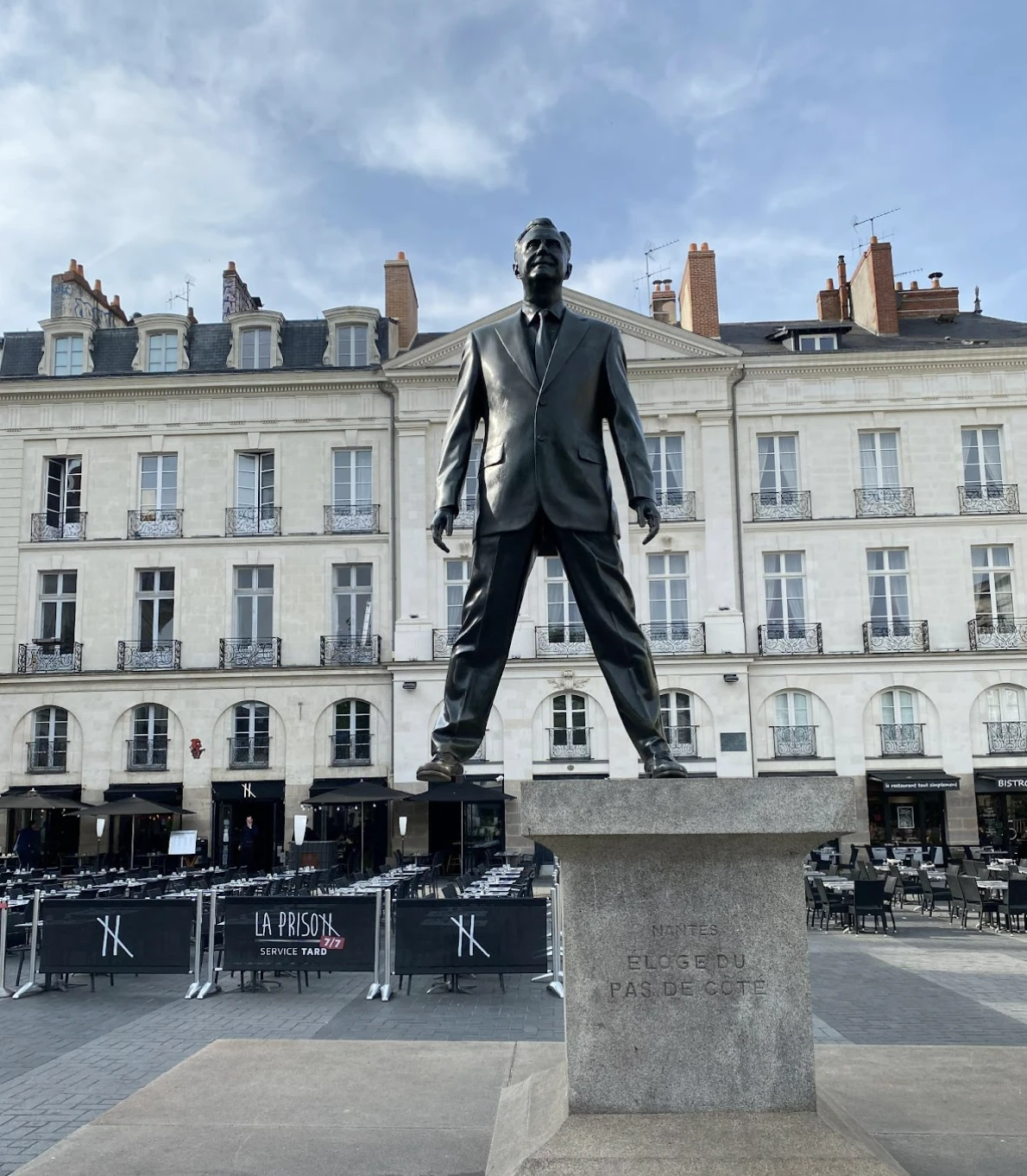 Les quatre autres sculptures à échelle humaine de l’artiste sont visibles sur le passage Pommeraye, dans la cour du château de Nantes. Mention spéciale à Éloge du pas de côté, où l’œuvre du plasticien semble en décalage avec son socle, exemplaire du travail de l’artiste qui consiste à développer une poétique de l’absurde.