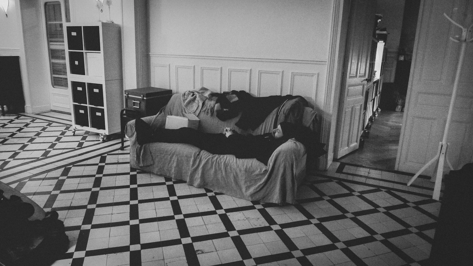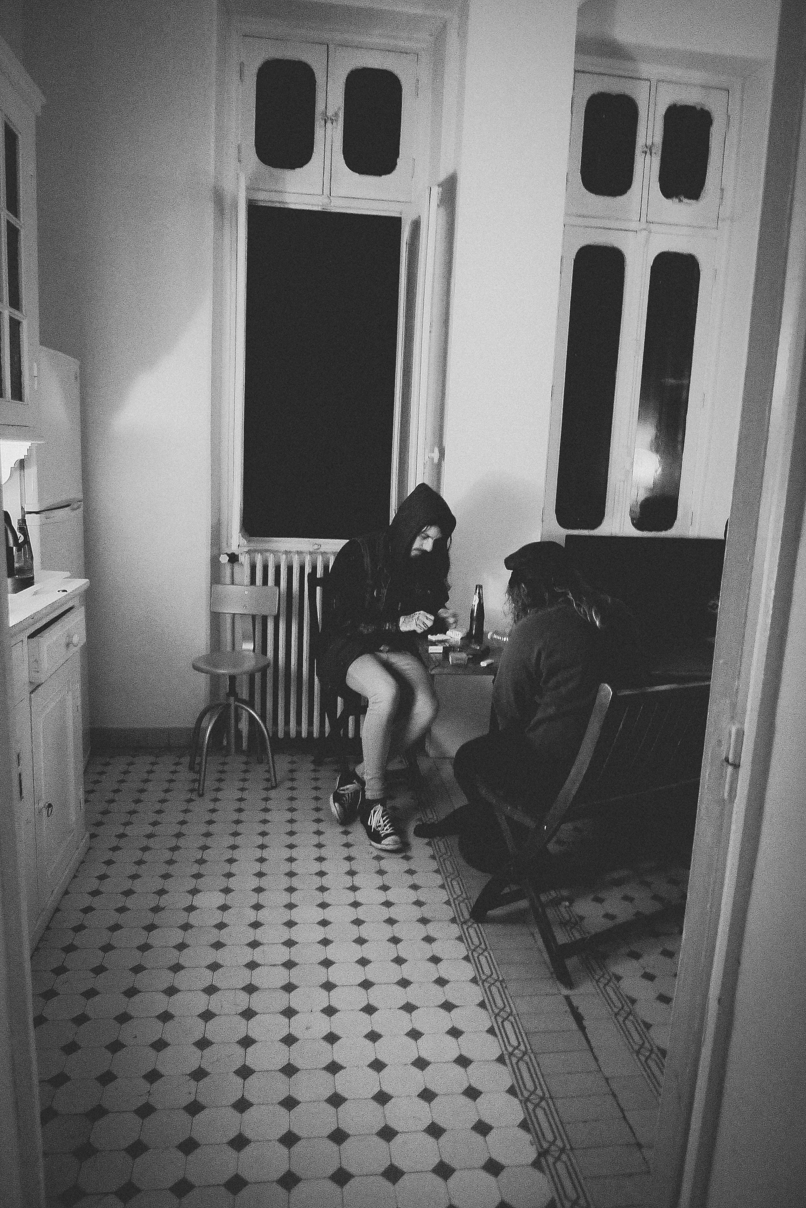Après avoir bu pas mal de rouge, après avoir fait connaissance avec une panoplie de SDF colorés et qu’une dame ait noté sur sa napkin «Les Rats Sauvages» pour se souvenir du nom du groupe (ça ne s’invente pas), j’apprends que la bande est logée un peu à l’extérieur de Paris dans un manoir transformé en studio, et qu’ils y campent quelques jours pour enregistrer de nouvelles chansons. J’apprends aussi qu’il faut absolument que je voie ça, et je ne sais pas trop comment on se retrouve dans un taxi en route pour la maison avec des réserves de vin pour la nuit.