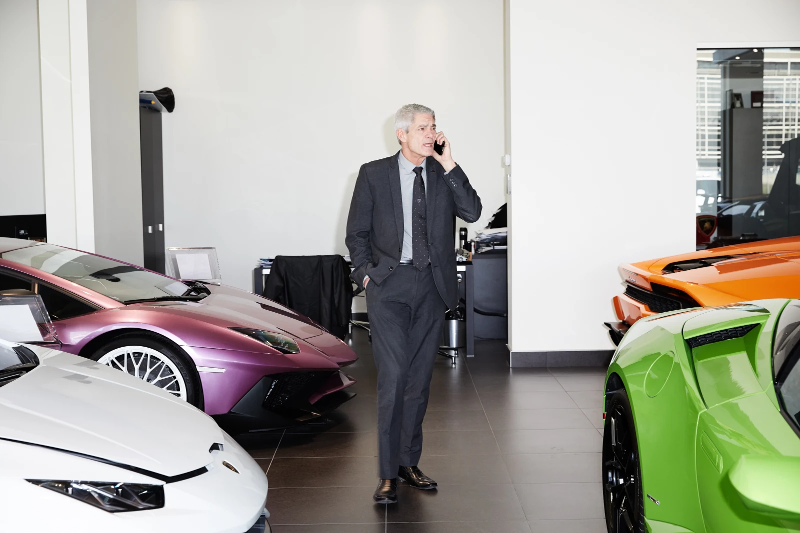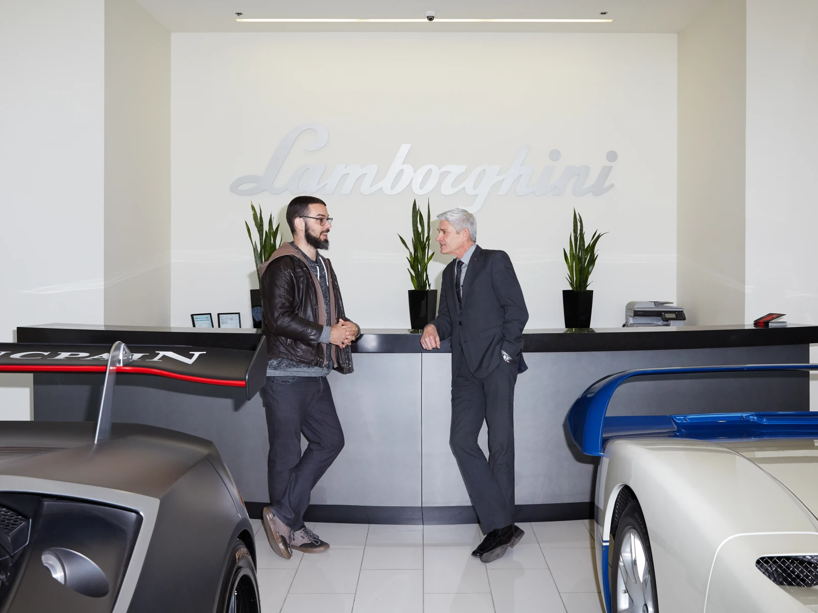 Là-bas m’attendait Bernard Durand, un sympathique monsieur à l’allure intemporelle qui vend des Lamborghini à longueur d’année. Près de son bureau, on trouve un modèle Aventador de couleur mauve Kool-Aid qui se détaille 850 000 dollars. C’est un magnifique véhicule, mais tous les modèles sur le plancher le sont. Ils partagent tous les mêmes couleurs criardes, la même allure futuriste et les mêmes courbes agressives à mon œil de néophyte qui n’a jamais mis le pied dans quelque chose de plus luxueux qu’une BMW à 60 000 dollars. Pas plus con qu’un gars qui vient de gagner à la loterie, je lui demande : « Ce char-là… pourquoi il vaut presque 1 million de dollars ? »
