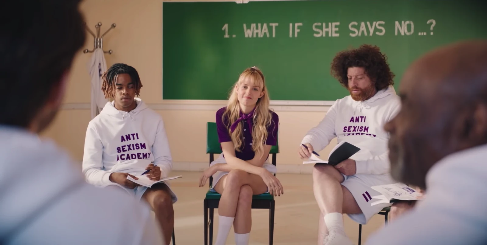 Ceci étant dit, le message prend souvent trop de temps à s’installer dans l’esprit des gens, c’est pourquoi la chanteuse insiste, une fois de plus, dans son nouveau clip. Elle se présente donc en tant qu’enseignante de l’Académie anti-sexisme, une école où les élèves (autant hommes que femmes) apprennent les rudiments du sexisme quotidien : agressions, iniquités salariales, commentaires déplacés, et autres cochonneries que subissent les femmes jour après jour.