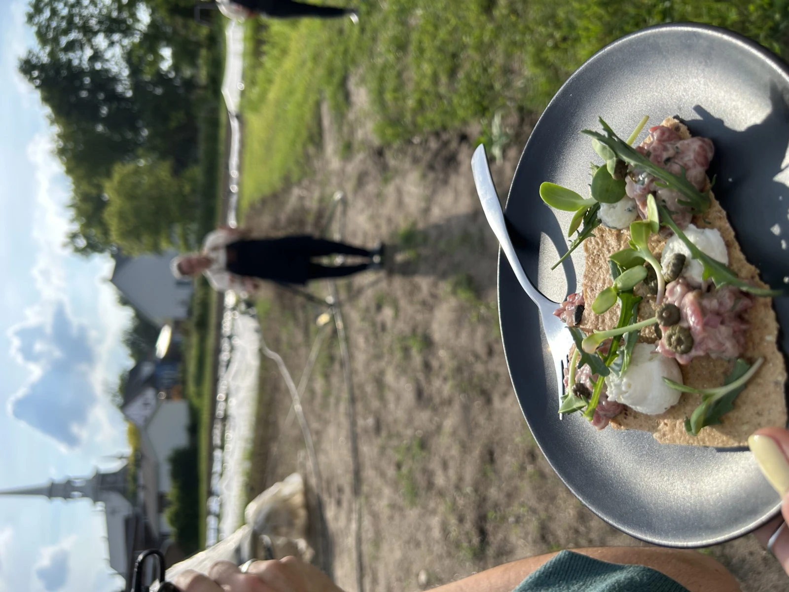 Au Pâturage, c’est né d’un désir d’être dehors, d’être excité de sortir dans les champs et d’inclure la nature au restaurant pour le transformer en expérience. Ce sont trois aires de culture maraîchère et une serre qui permettent à l’équipe de cultiver tout le nécessaire pour concevoir les plats du menu. Avec une salle de service intérieure ainsi qu’une immense terrasse qui côtoie les champs, l’endroit peut recevoir un maximum de 55 invités à la fois. Quand on est reçu chez Chloé, on est accompagné du début à la fin par ses anecdotes racontées avec le ton chaleureux qu’ont ces vieux amis qu’on ne voit pas assez souvent. C’est donc par souci de conserver cette atmosphère de convivialité que l’équipe a pris la décision de limiter la taille des groupes servis chaque soir.