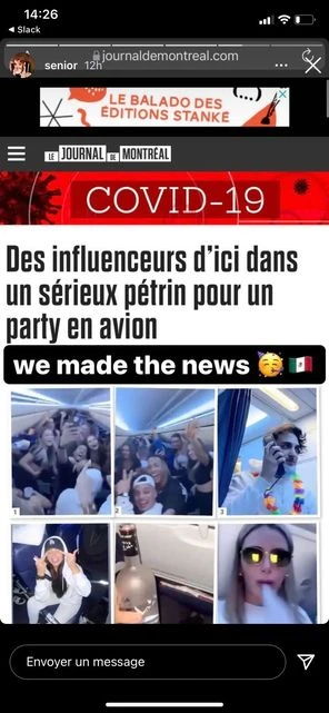 4 janvier 2022. Les premiers reportages dans les médias dits traditionnels commencent à paraître, annonçant que des influenceurs de chez nous sont dans un « sérieux pétrin pour un party dans un avion ».