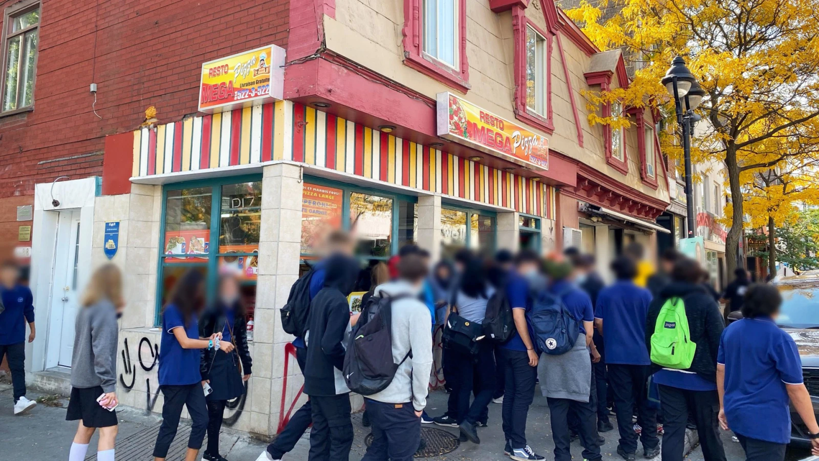 On le croit sur parole en voyant les élèves débarquer massivement dès que la cloche résonne à 11 h 20. En quelques minutes, ils et elles ont investi la pizzeria, le dépanneur d’en face, les vélos stationnés à la borne Bixi et l’édicule du métro, au grand bonheur des mouettes qui se font un festin de restants de bouffe abandonnés partout sur le trottoir et dans la rue.