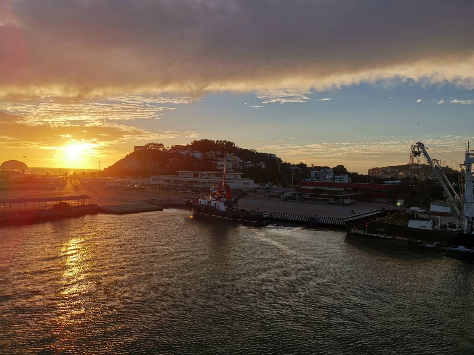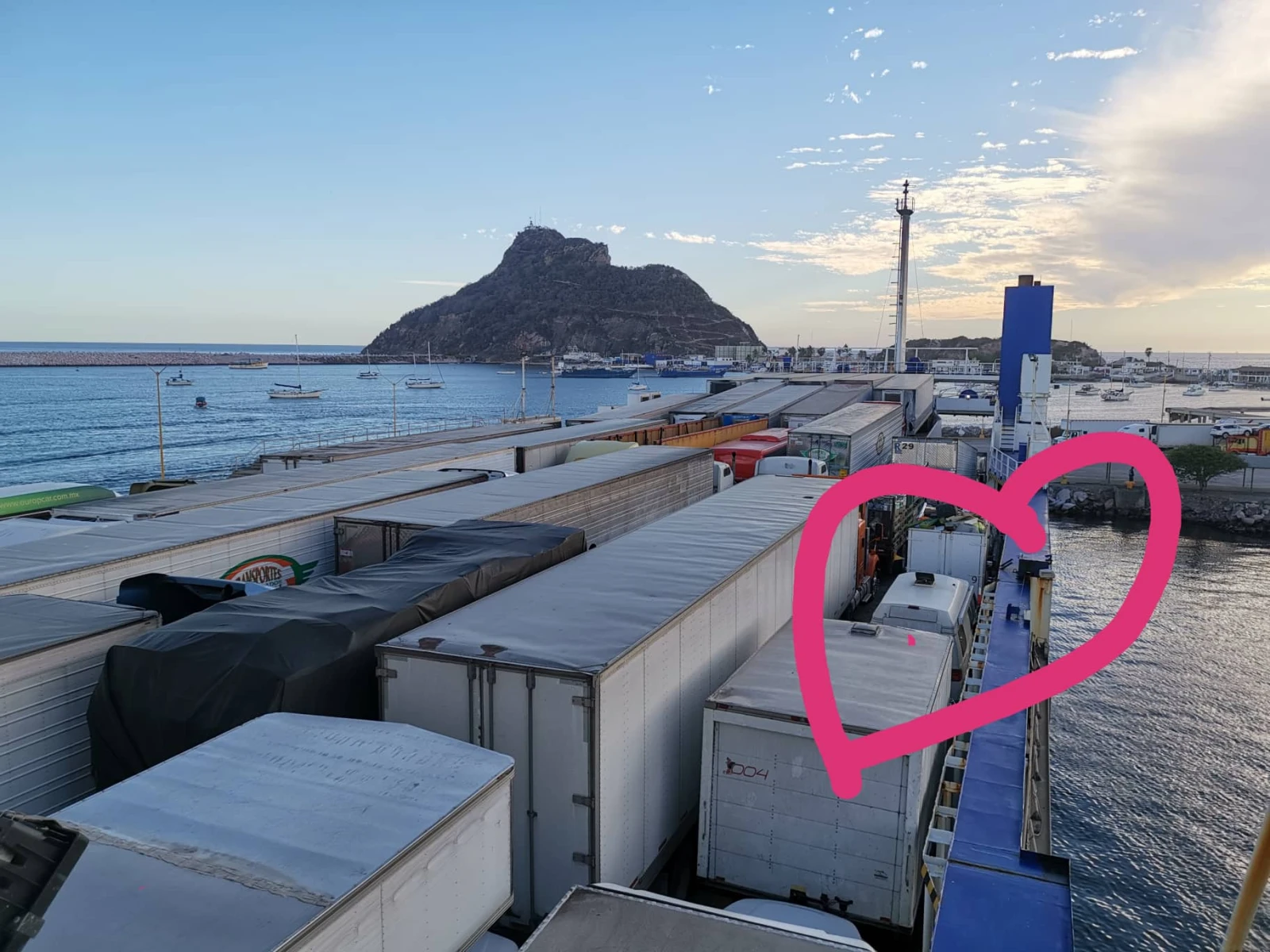 Deux compagnies offrent la traversée. Chez la première, on est accueillis dans un bureau clean, climatisé, avec une préposée souriante, gentille. Sauf qu’ils chargent 850 $ et on n’a pas le droit d’aller dans le camion, il faut payer pour une couchette (ou des sièges) et les repas (pas le droit d’apporter de la nourriture à bord). Avec eux, la traversée dure 12 heures. Budget de vaners oblige, on visite la deuxième compagnie. C’est là que le flou commence. On est accueillis dans un bureau/salle d’attente crasseuse et suffocante, rempli de gens qui n’attendent rien. On n’est pas vraiment les bienvenus et on dérange. J’essaie de m’informer, je pose des questions, la préposée (qui voit très bien que mon espagnol est limité) me répond avec le débit d’un Louis-José Houde en surdose de Red Bull. J’ai le cerveau en compote à essayer de tout comprendre et ma face se transforme en Chat Potté.