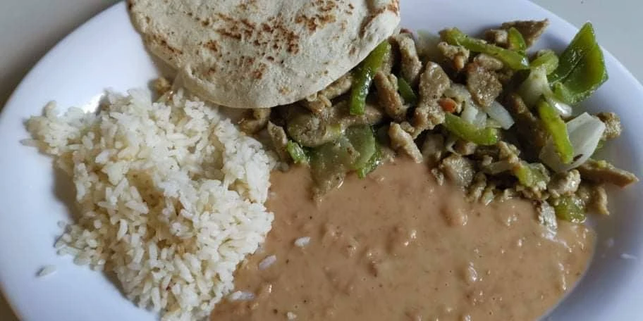 19 h toujours pas partis, on va souper. Oui, finalement, on a un souper ! On nous sert une assiette de « beige », mais du beige savoureux.