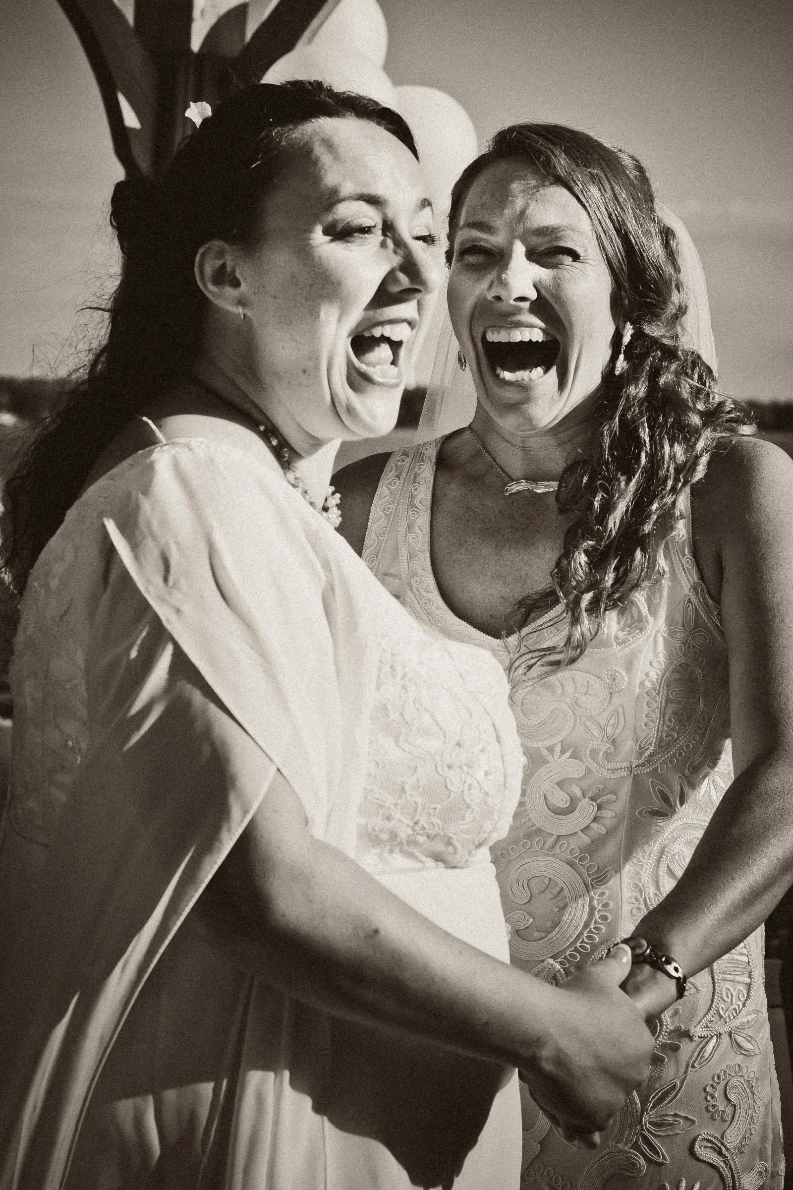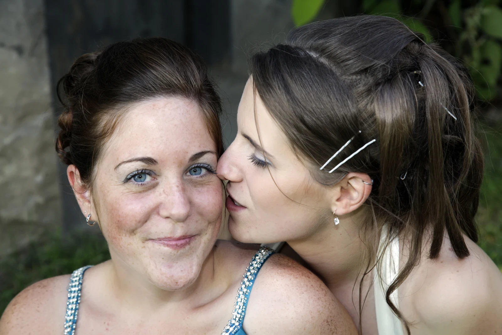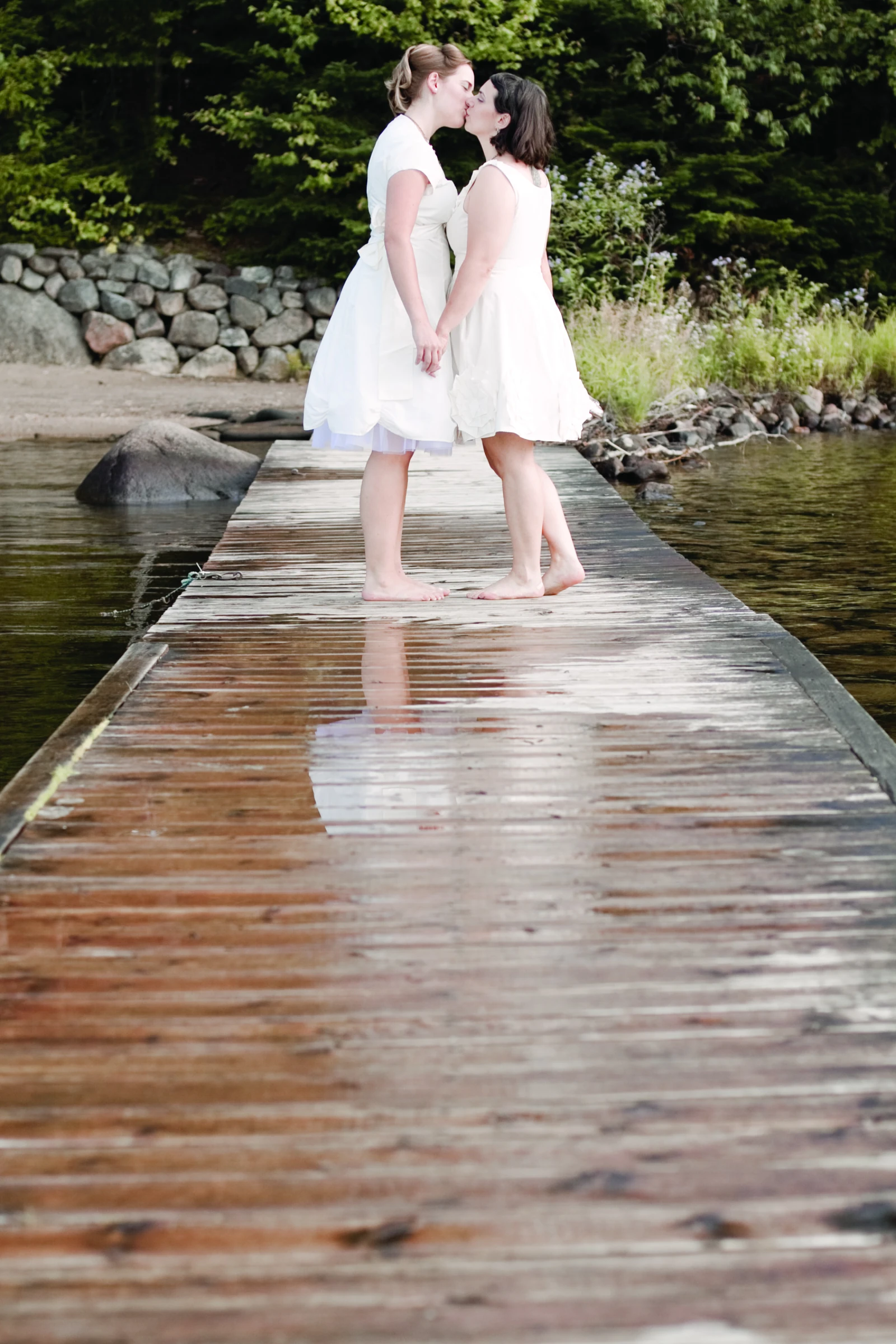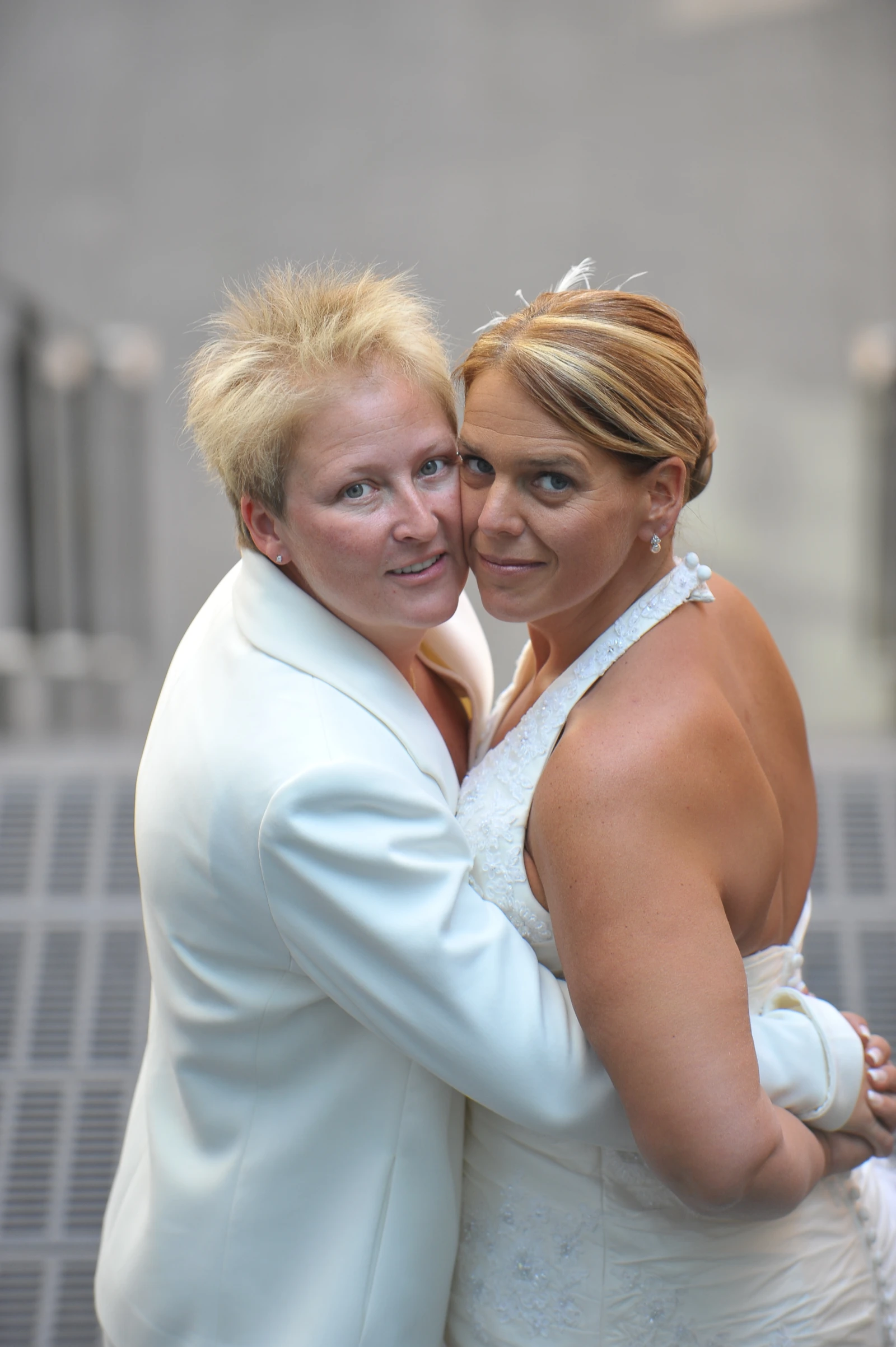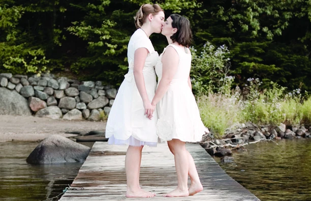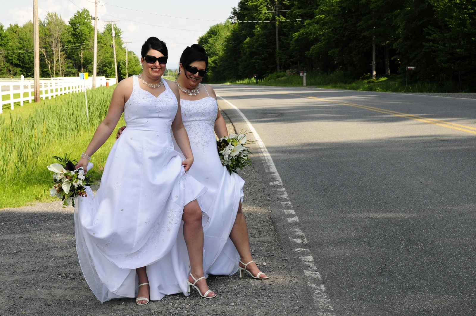 Deux bouquets, deux robes blanches, deux décolletés, deux mariées et de l’amour, en veux-tu en v’là. À côté d’elles, les noces de René et Céline, ça fait presque pitié. (Cette galerie est extraite du #32 Spécial Lesbiennes, présentement en kiosque)