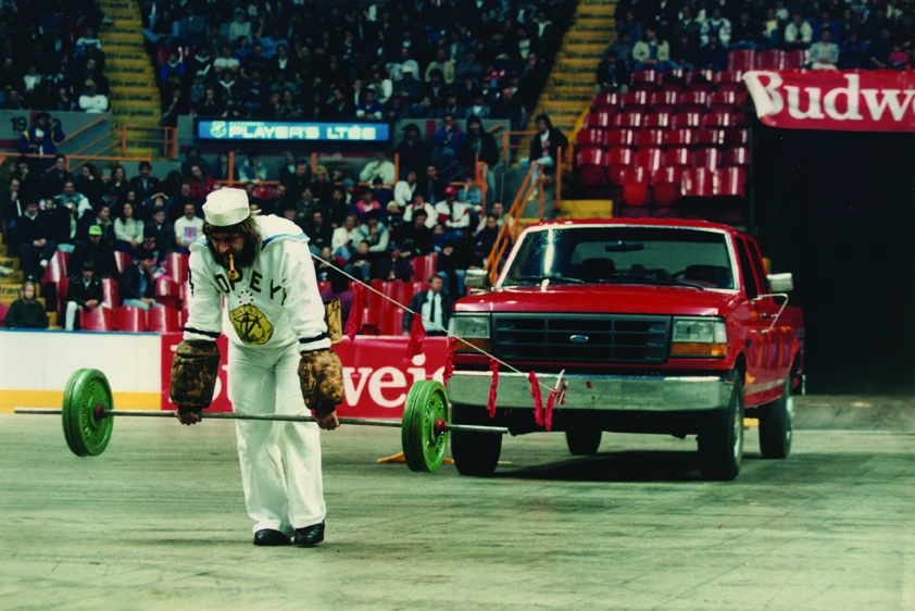 Dans l’histoire de la Gaspésie, y a eu plusieurs hommes forts, mais ils sont tous tombés dans l’oubli. Les curés ne voulaient pas qu’on parle de leurs tours de force, parce que c’était péché. C’était de la vanité! Aujourd’hui, je fais des exploits au nom de tous ces hommes forts qu’on a oubliés. Je fais vivre ma légende. La légende de Popeye de Matane.