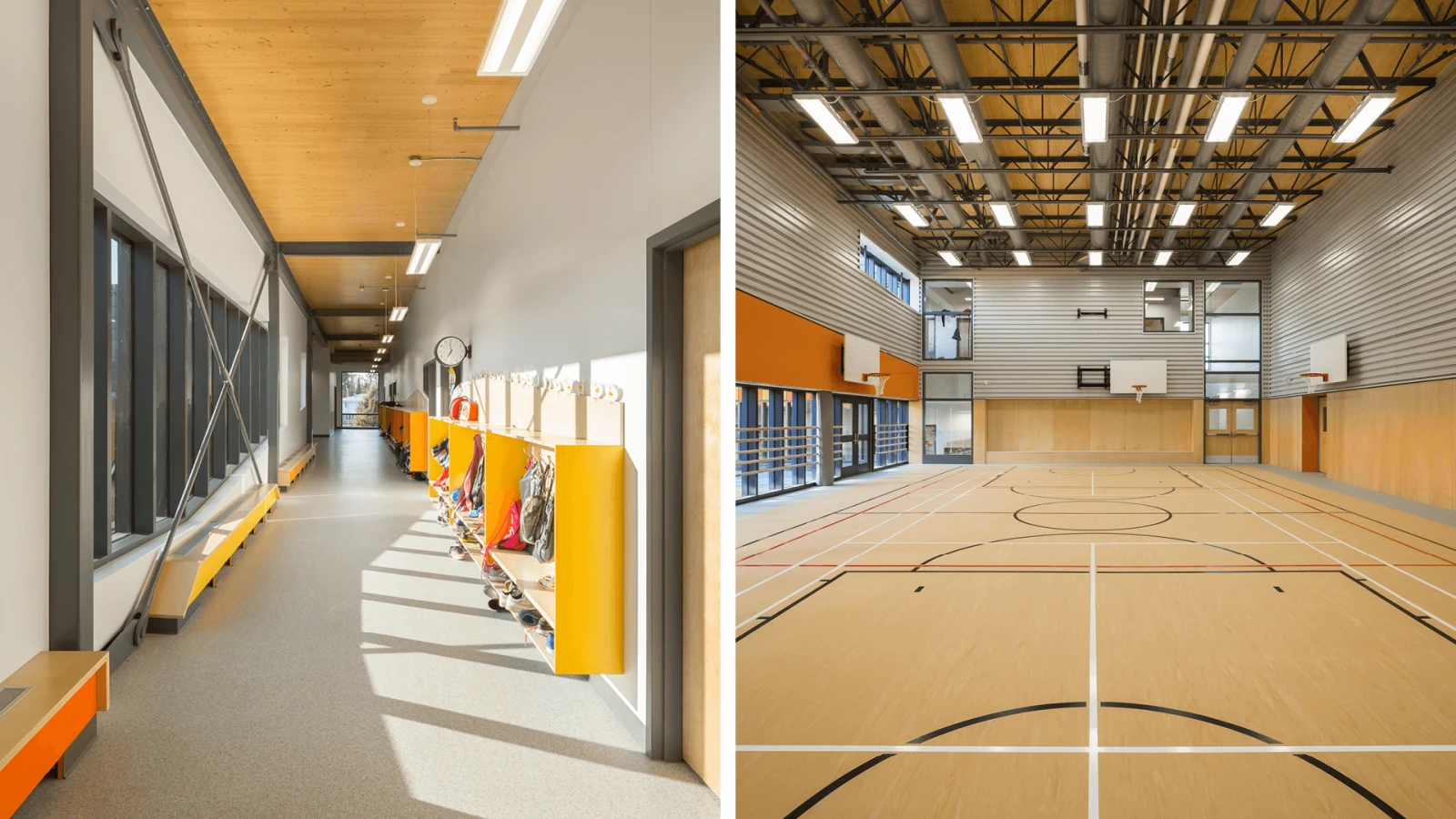 Comme l’école est située proche de la base militaire de Valcartier, de nombreux élèves y vivent avec le stress qu’un de leur parent soit déployé dans un autre pays au péril de sa vie. C’est pourquoi on a décidé de miser sur une construction et un mobilier qui mettent beaucoup le bois en valeur, afin de faire de cette école un beau petit cocon biophilique chaleureux où les enfants se sentent plus en paix.
