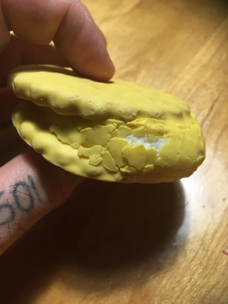 La nourriture jaune étant assez rare, j’ai tout de suite été attiré. À travers l’emballage sans prétention, la texture me semblait être de type « gomme à effacer de collection ». Je suis collectionneur.