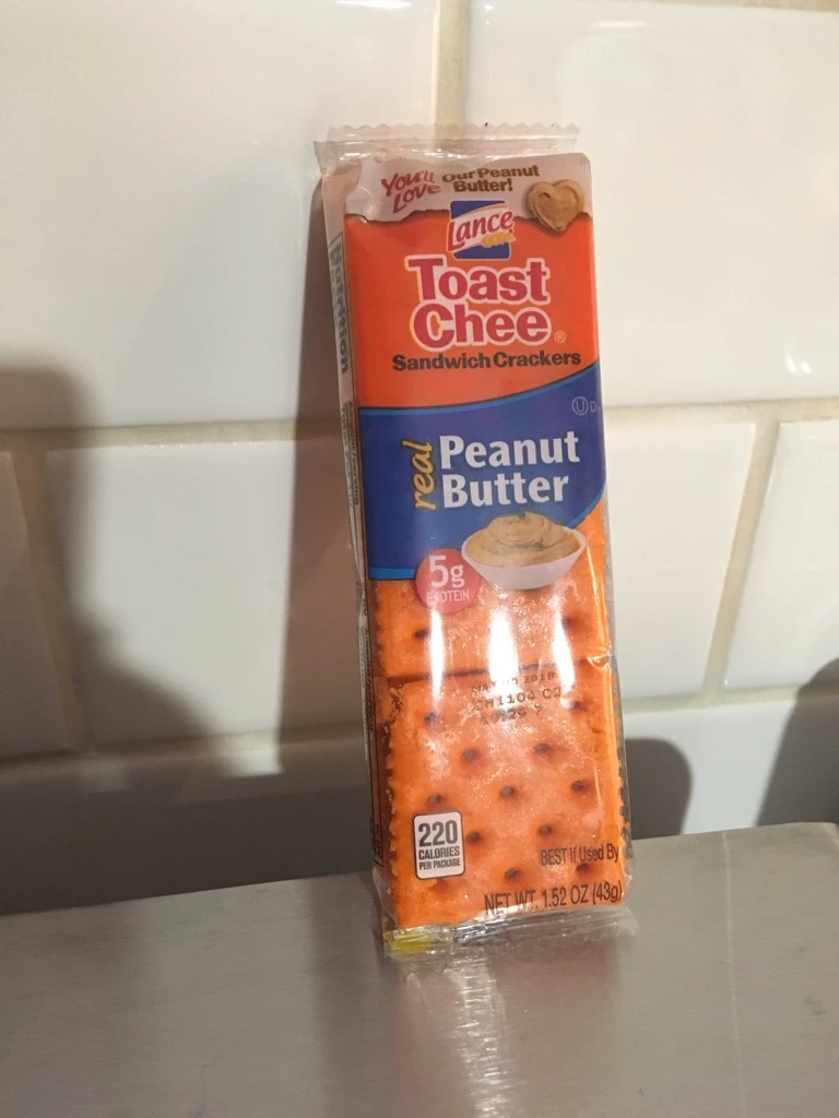 Cette semaine, il analyse le craquelin de type sandwich (Toast Chee) de la marque Lance, au fromage et beurre d’arachides.