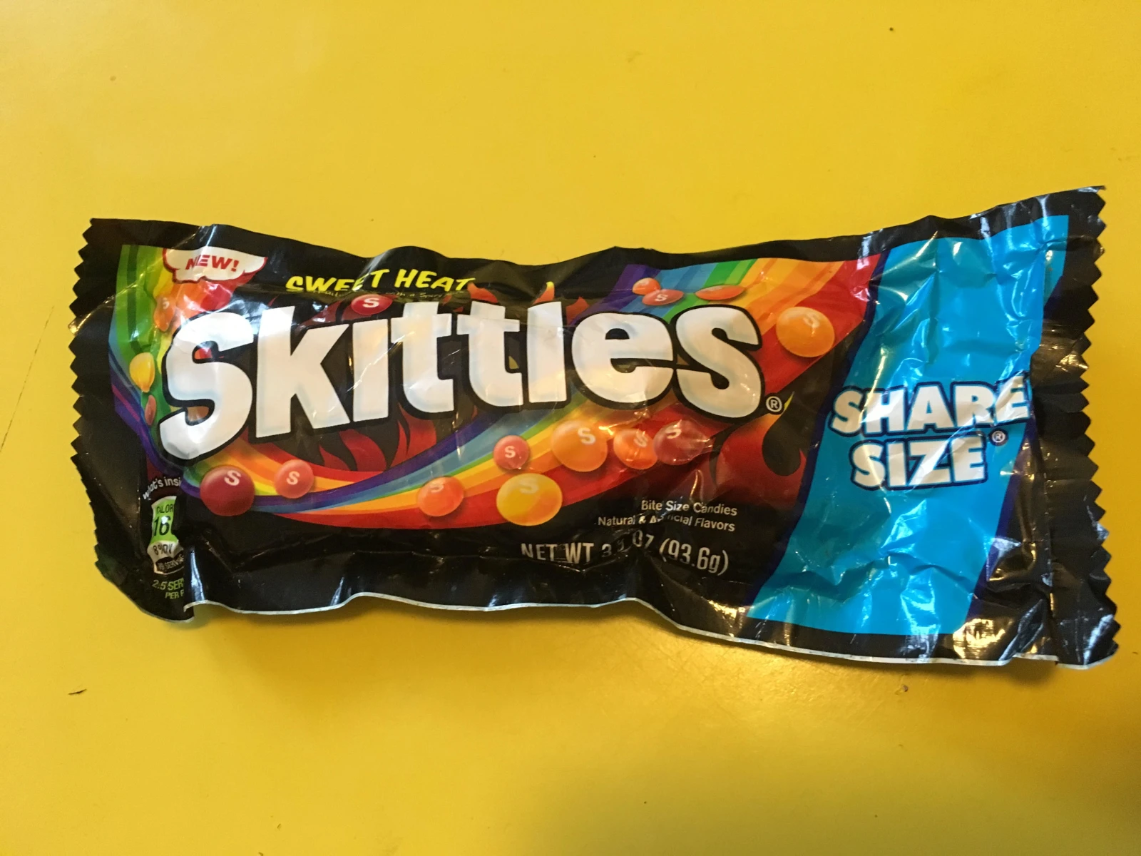 Les Américains adorent ajouter du piquant à leur vie sans aide sociale et c’est pourquoi je vous présente aujourd’hui les Skittles Sweet Heat. Je pensais avoir affaire à des Skittles au goût prononcé de cannelle, qui s’apparenterait drôlement à de simples « petits coeurs », mais ce dont j’ai été transporté dans une toute autre dimension. Le « sweet heat » ici est bel et bien du piquant de type « sauce piquante » ou « buffalo ».