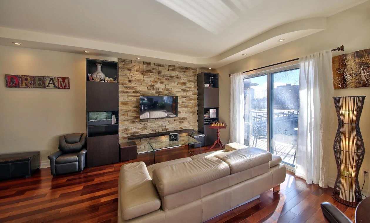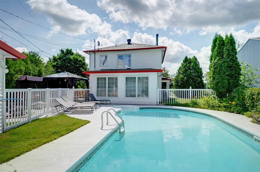 12 pièces, 3 chambres et deux salles de bains et SURTOUT Y’A UNE PISCINE! On s’voyait bien chiller tout l’été là en chantant «Please don’t go» dans l’eau, mais l’agent immobilier nous a dit qu’Olivier Primeau était déjà sur le coup. Apparemment, il voudrait ouvrir un mini Beach Club pour les kids!