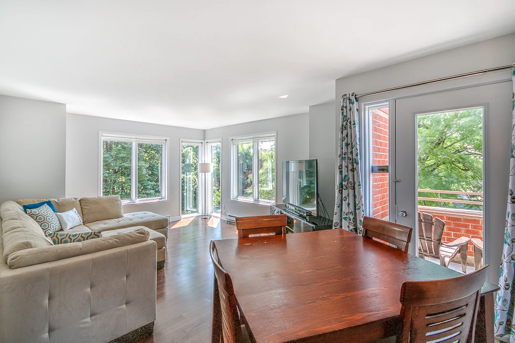 On l’aimait bien celle-là, parce que y’a des grandes baies vitrées pour bien voir les gens qui jouent dans les buissons de Longueuil.