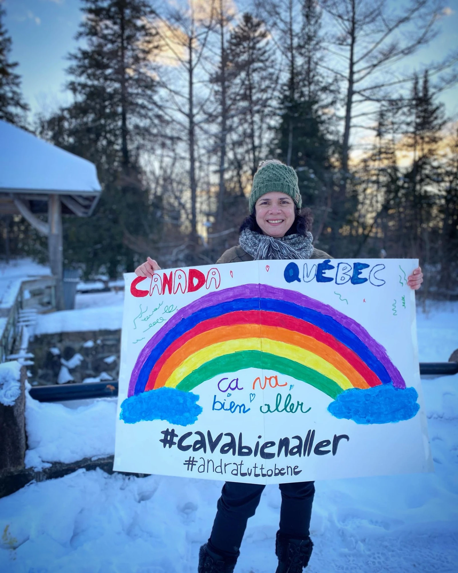 C’est d’ailleurs grâce à ses racines que l’arc-en-ciel le plus placardé dans les fenêtres de l’histoire a été importé ici. Gabriella n’a pas inventé le concept, elle s’est plutôt inspirée d’une initiative italienne d’un organisme qui encouragerait les enfants confinés durant la première vague à accrocher à leur balcon un dessin d’arc-en-ciel accompagné des mots « andrà tutto bene », qui signifient « Tout va bien aller » dans la langue de Nicola Ciccone.