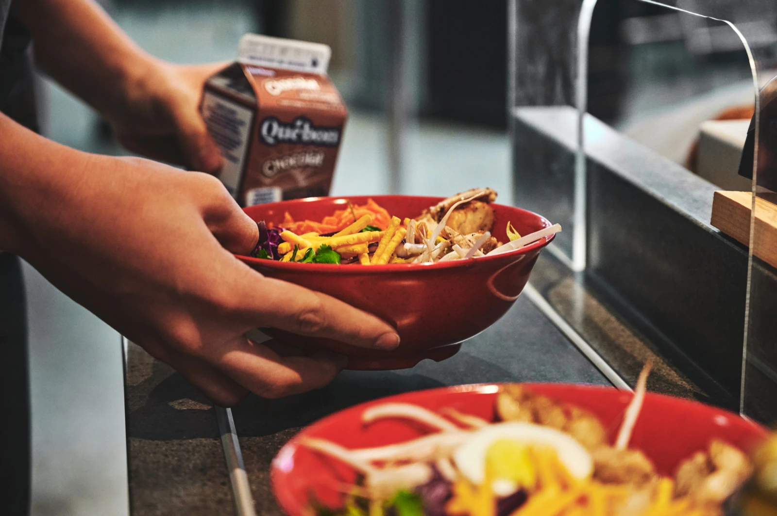 J’ai entendu dire que les cafétérias ne sont plus comme avant. Que les repas chauds, c’est rendu exceptionnel chez toi, chère cafétéria. Mais que le choix ne manque pas : quesadillas, tajine de poulet, tempeh, parmentier de porc effiloché et j’en passe. Que les petits brownies pour dessert sont maintenant faits avec de la courge, du tofu ou d’autres produits du terroir québécois. Que les propositions de boissons et de biscuits locaux sont si variées qu’il est rendu difficile de choisir sa collation, maintenant. Que tu ne proposes plus juste des bars à salades, mais aussi des bars à soupe ramen et même des poke bowls. Que les personnes végétariennes, végétaliennes ou encore intolérantes au gluten ont désormais plein d’options pour manger à leur aise.