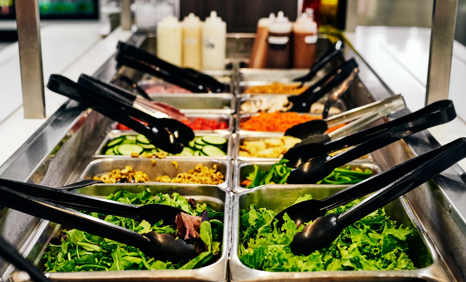 Dans un bar à salades, c’est nous, les artistes. L’assiette est un canevas prêt à suivre l’inspiration du jour. Tomates? Maïs? Concombres? Olives farcies? Fromage? Un trait de vinaigrette ranch en zigzag, un nuage de sel et de poivre sur notre création, et nous voilà chef.fe.s.
