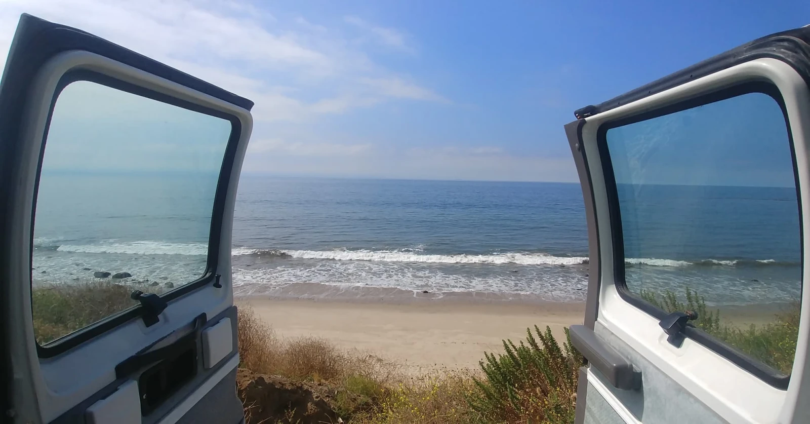 Mon chum est en train de hacher de l’ail, ça se mélange à l’air salin. Miam. Ce soir, on dort au bord du Pacifique étatsuniens pour la première fois. Sur l’autoroute 1. Je dis « dormir ». Comment savoir. L’expérience me dit que moi je dormirai comme une grosse loutre et Antoine va refaire le lit 100 fois à force de tourner. Bref. Cher Pacifique, comme tu nous a manqué. On te connait bien au Mexique, mais c’est la première fois qu’on te goûte en anglais.