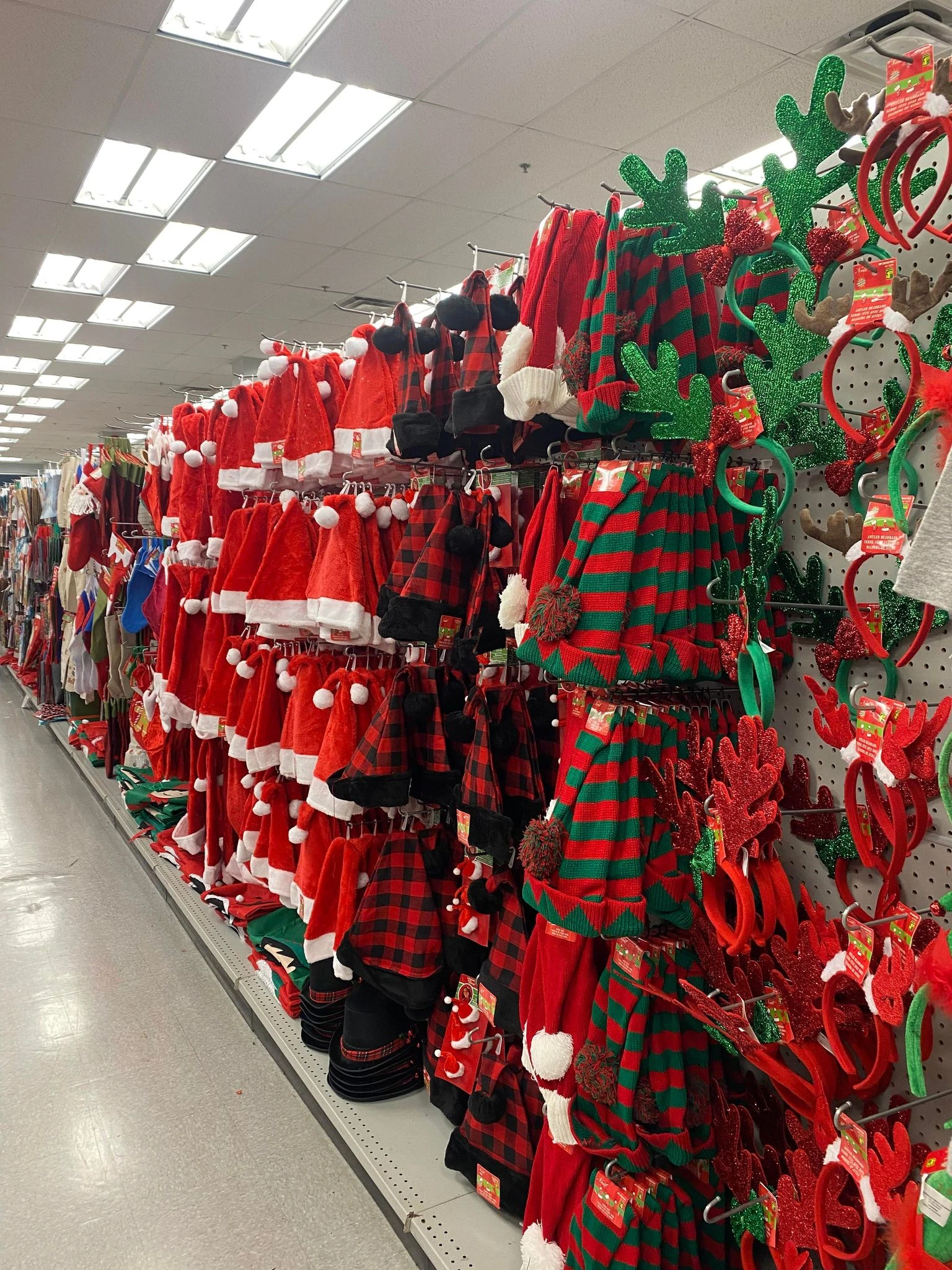Devant un mur complet de guirlandes et de couronnes en plastique, je surprends une dame en train de voler des mitaines à 4 $.