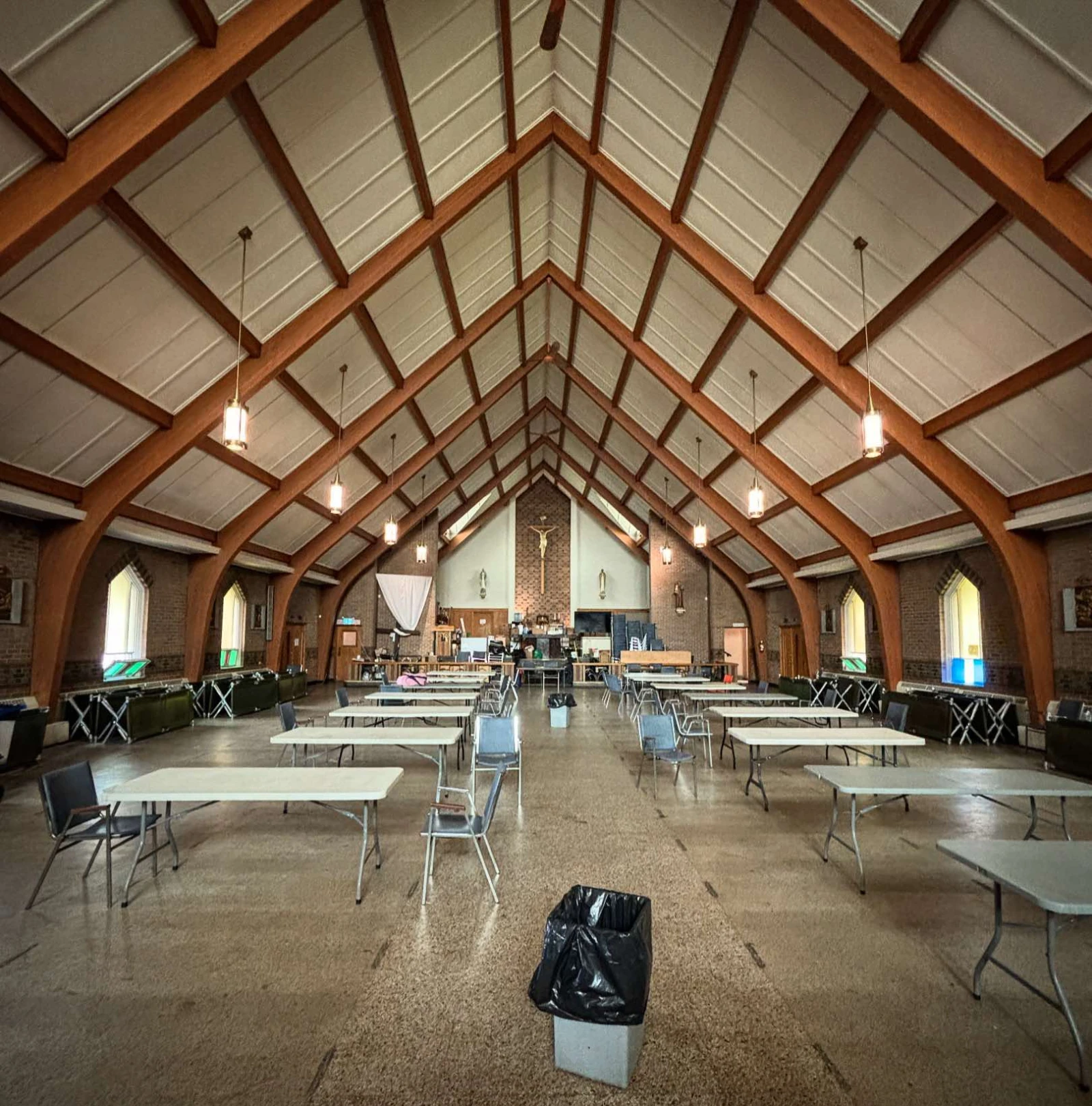 Une visite de l’église convertie suffit pour comprendre sa fébrilité à l’idée de déménager ses installations.