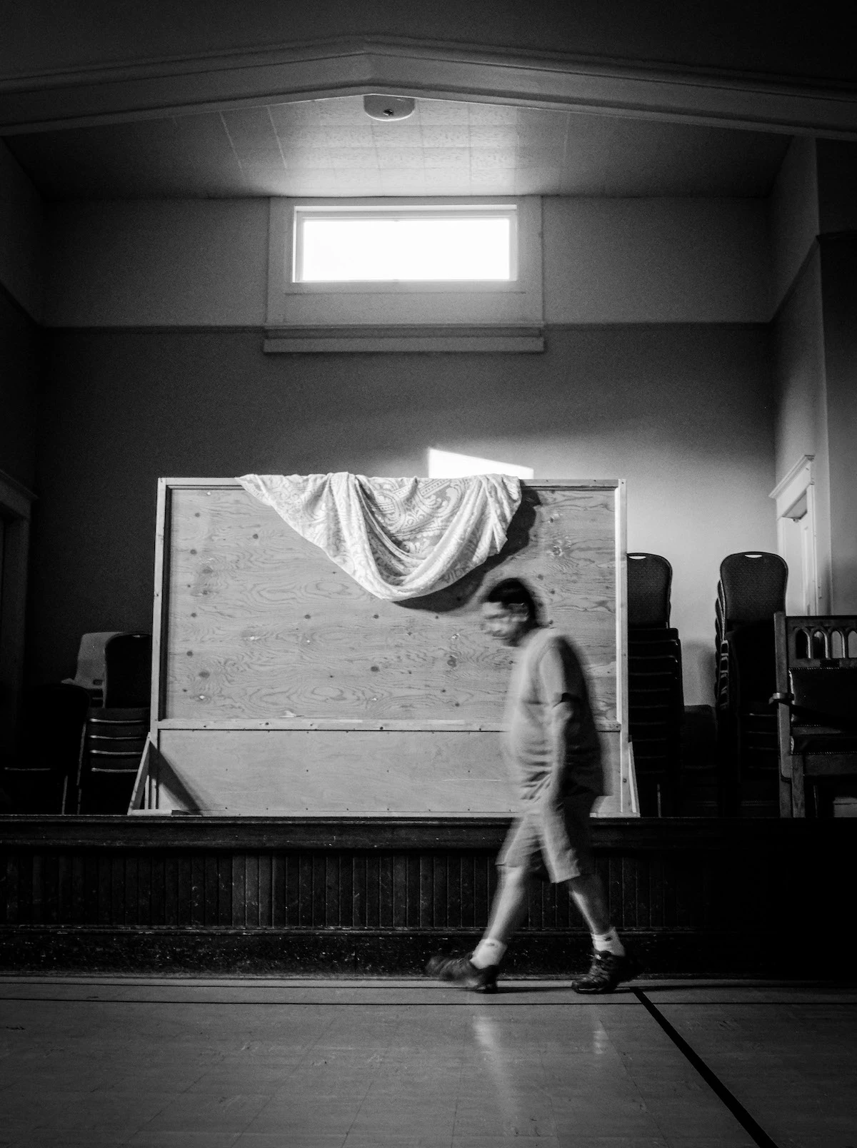 Une lumière chaude de fin d’après-midi perce les fenêtres, des érables se balancent dans le stationnement, un autobus de la ville redémarre. Et pourtant, cette impression au ventre de ne pas appartenir à la même réalité qu’eux. À quoi ressemble le quotidien lorsqu’on s’accroche à un miracle? Comment vit-on à trois, enfermé entre les quatre murs de sa tête et d’une église vide?