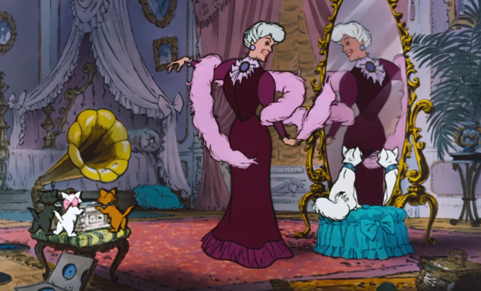 Mais qui était-elle, vous demandez-vous sans doute en haleine au bord de votre chaise? Cette #girlboss, c’était madame Adélaïde de Bonnefamille du film Les Aristochats, de loin mon favori de la bibliothèque Disney. Baissez-moi ces sourcils, je vous prie, et prenez un moment pour considérer ce personnage cruellement underrated de l’univers des films-que-les-parents-mettent-pour-avoir-deux-secondes-de-paix : madame de Bonnefamille est une millionnaire excentrique qui vit sa #bestlife dans un appartement parisien au tout début du vingtième siècle entourée de ses quatre chats dont les noms évoquent des artistes de la Belle Époque. Chaque jour, elle enfile ses plus belles robes, supervise les leçons de piano de ses rejetons à quatre pattes et traîne dans des cafés peuplés d’artistes et autres personnes fascinantes.