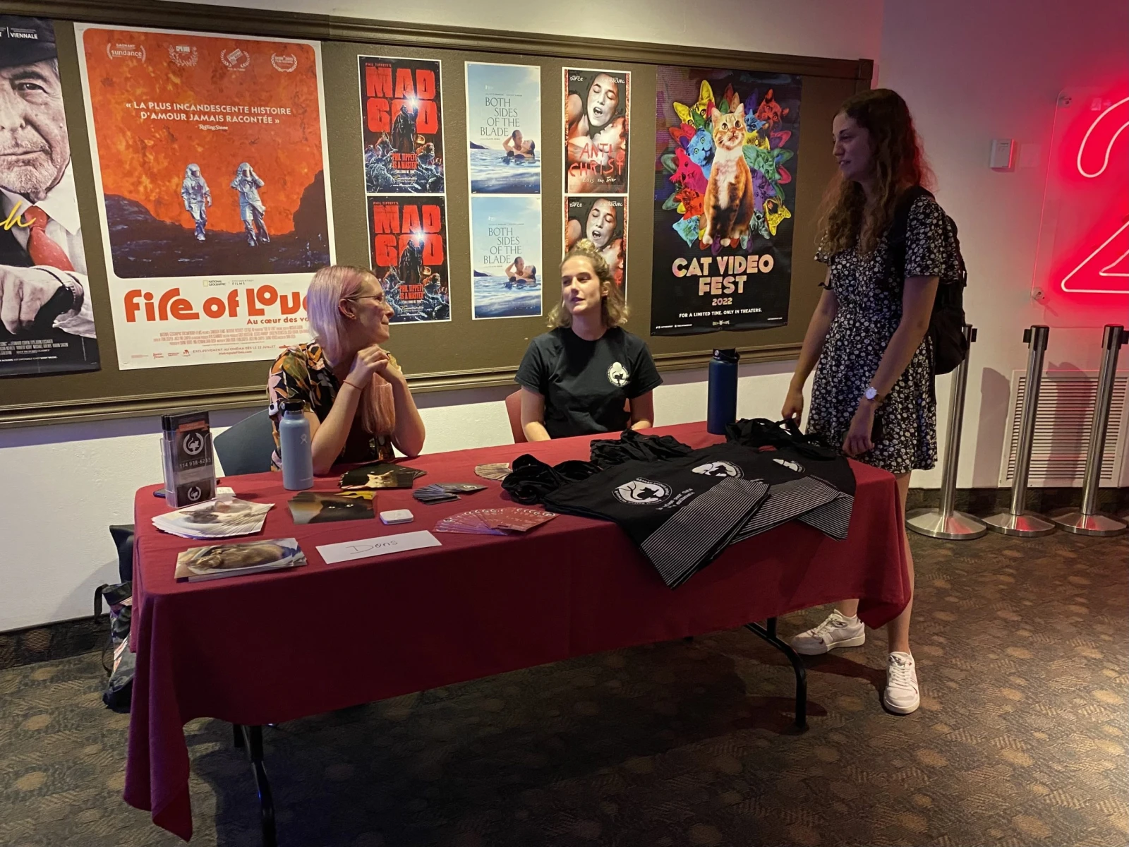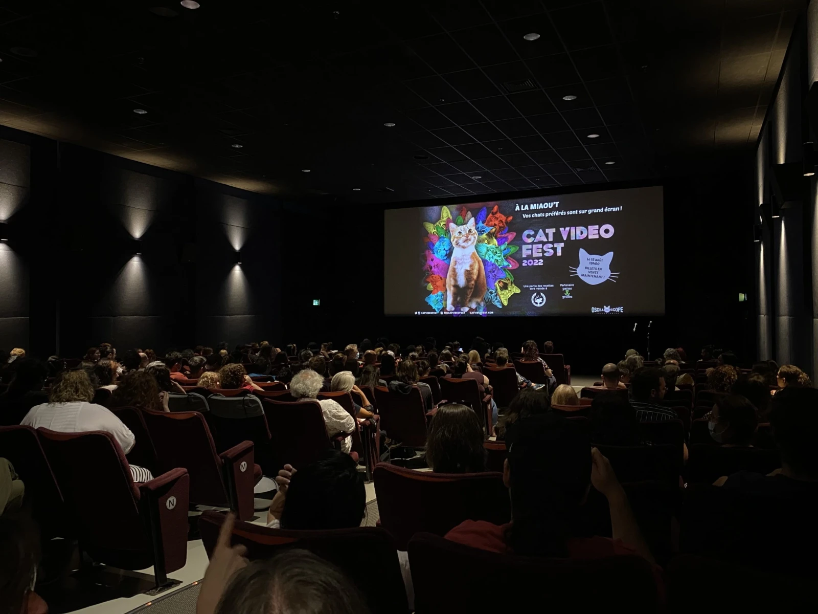 Les deux bénévoles espèrent donc trouver de nouveaux parents d’adoption parmi les spectatrices et spectateurs attendus. Ça ne devrait pas être trop difficile, puisque le cinéma se remplit rapidement de passionné.e.s de minous.