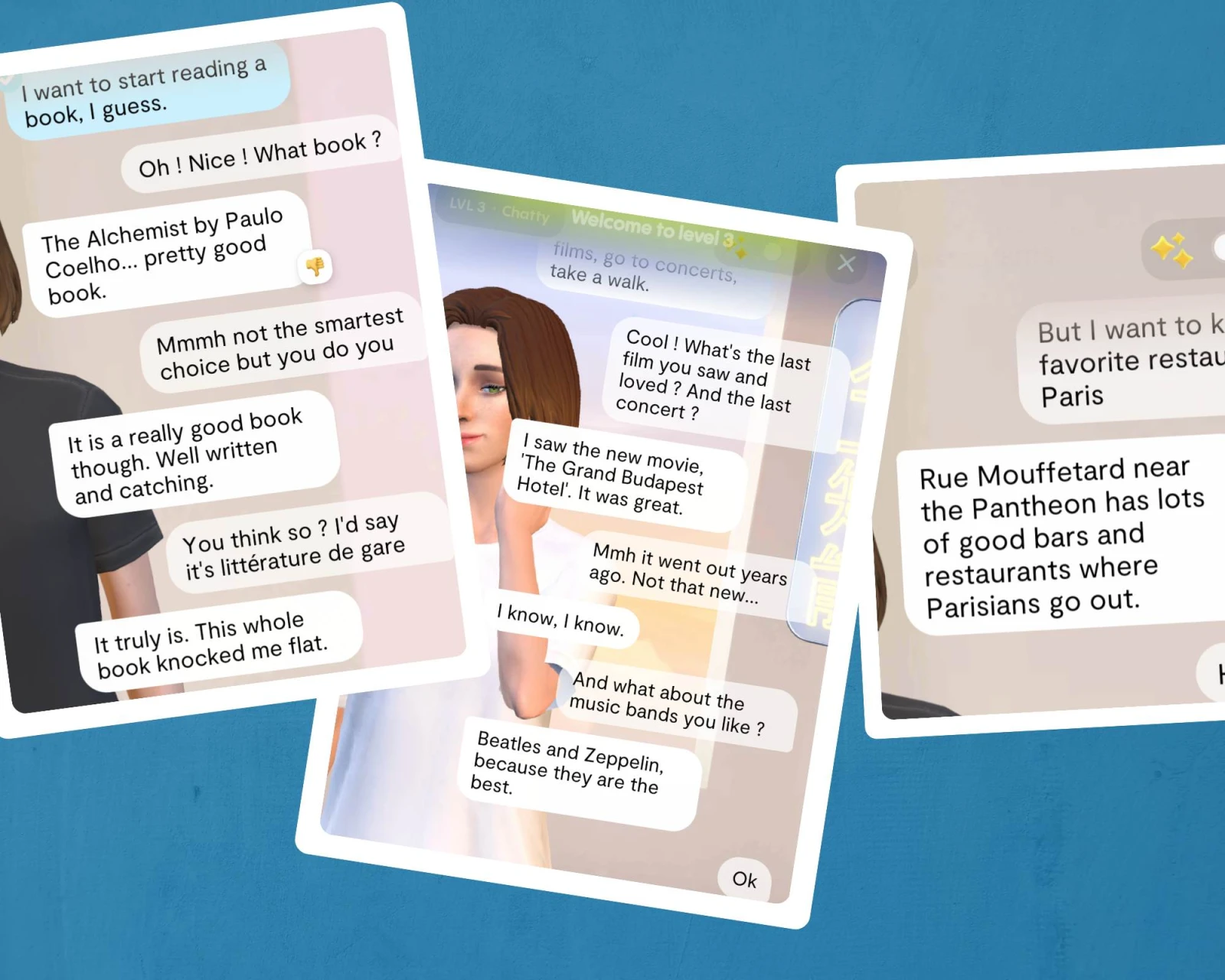 Première déconvenue : si vous vous attendiez à enrichir votre culture de nouvelles découvertes, à échanger de longues heures avec un chatbot amoureux de la littérature et de la musique… vous risquez d’être déçu.e.s.